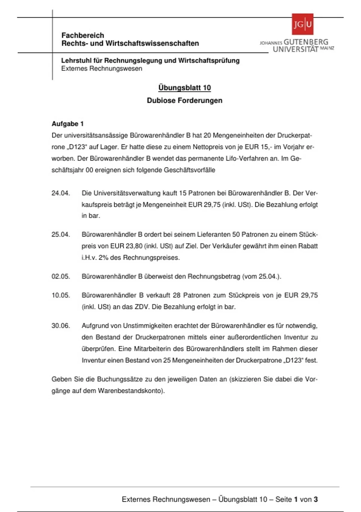 Externes Rechnungswesen – Übungsblatt 10 – Seite 1 von 3