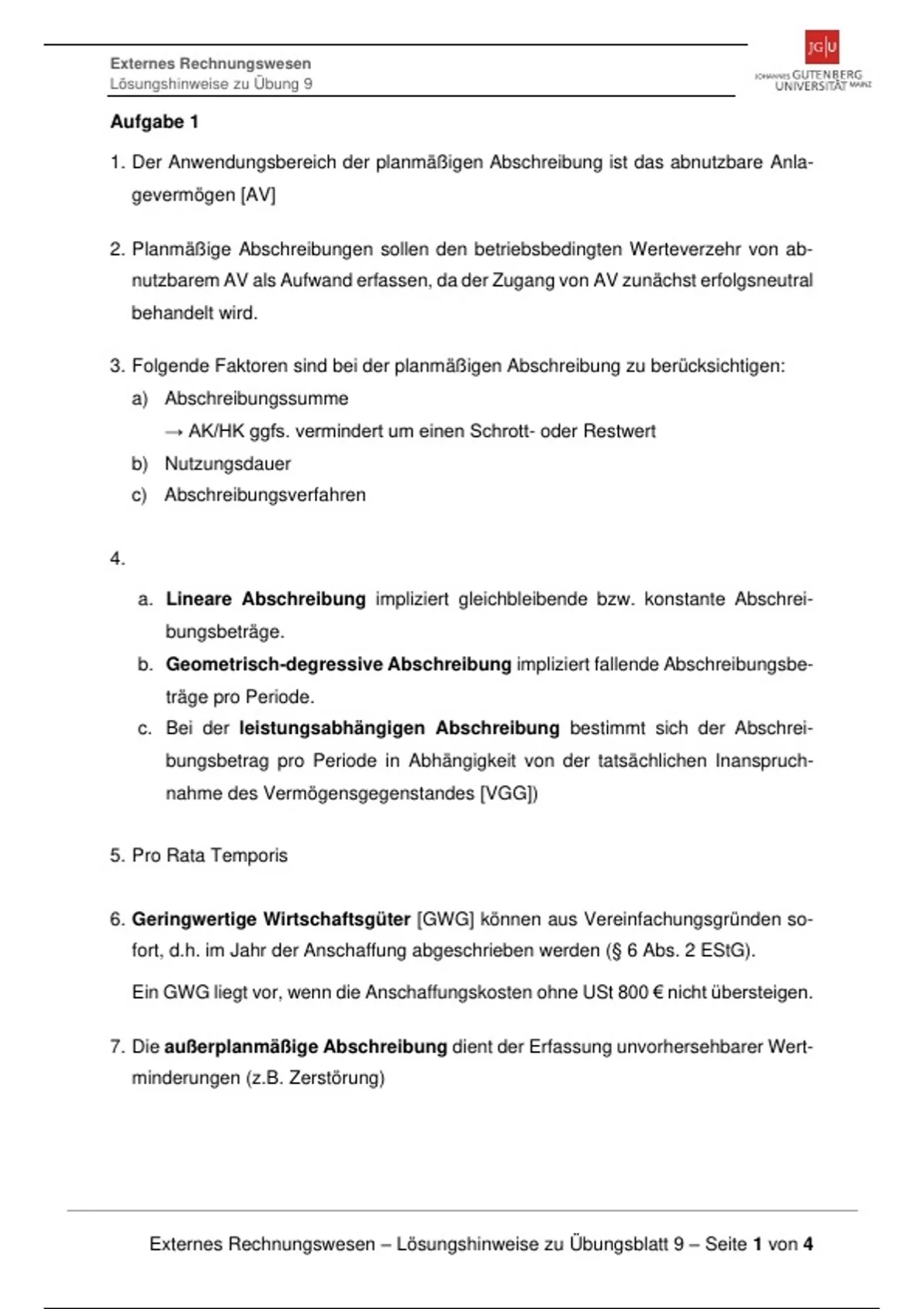 Externes Rechnungswesen – Lösungshinweise zu Übungsblatt 9 – Seite 1 von 4