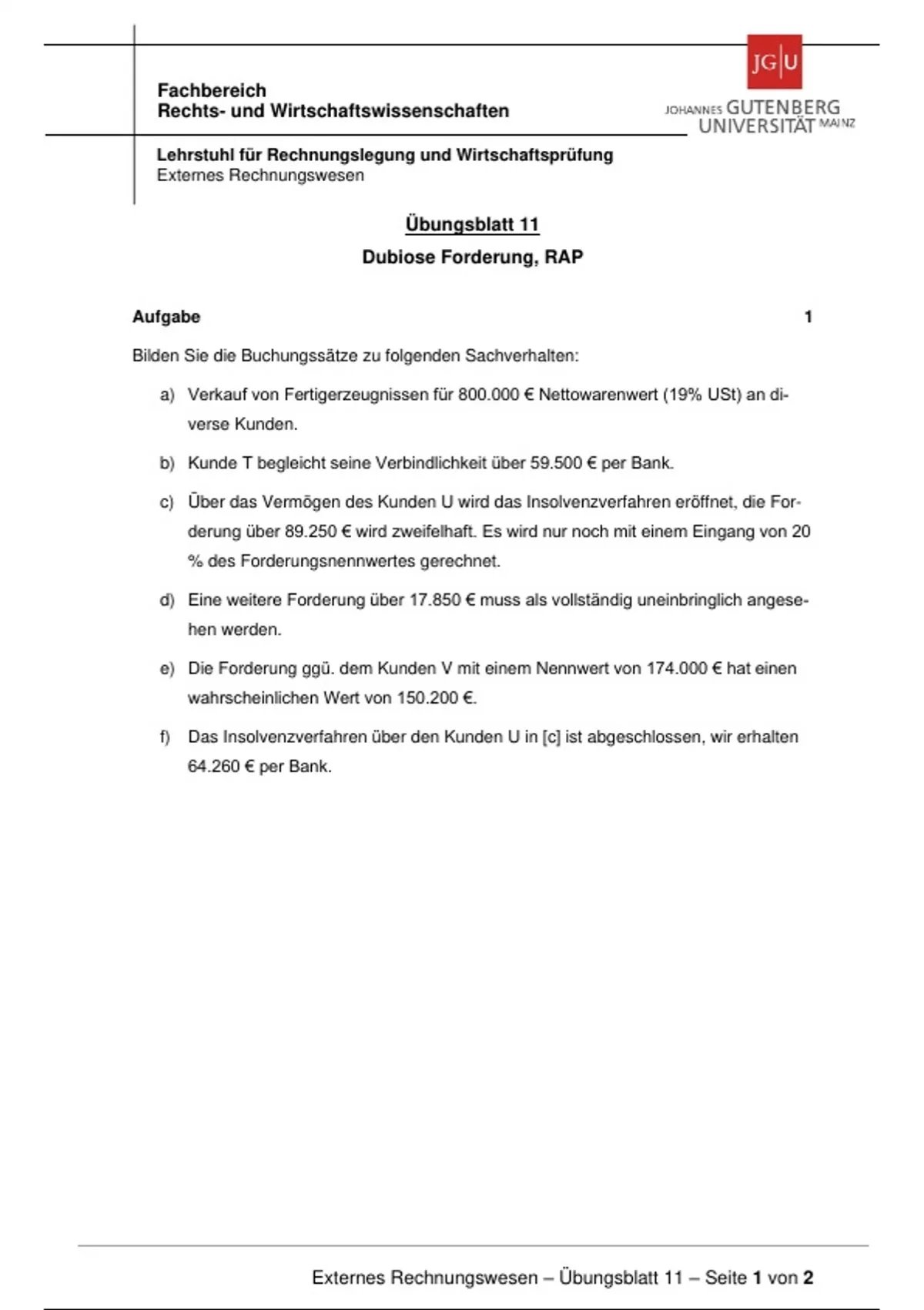 Externes Rechnungswesen – Übungsblatt 11 – Seite 1 von 2