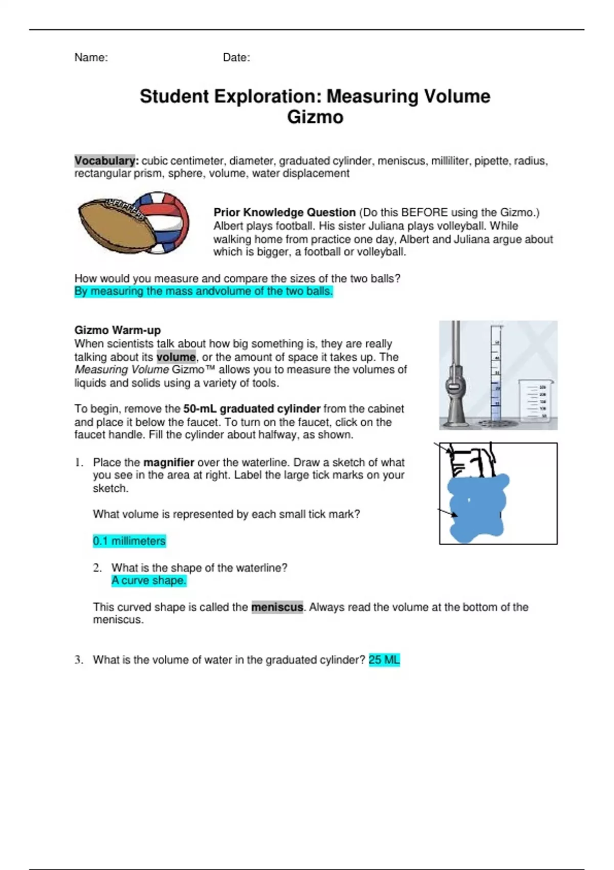 Student Exploration Measuring Volume Gizmo