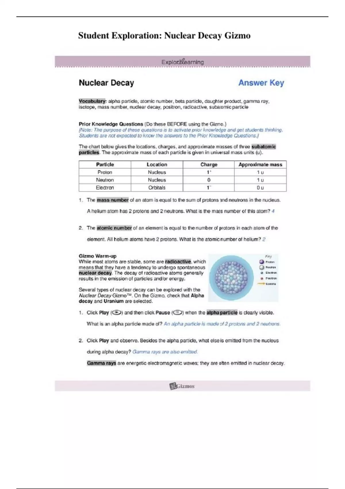 Student Exploration Nuclear Decay Gizmo