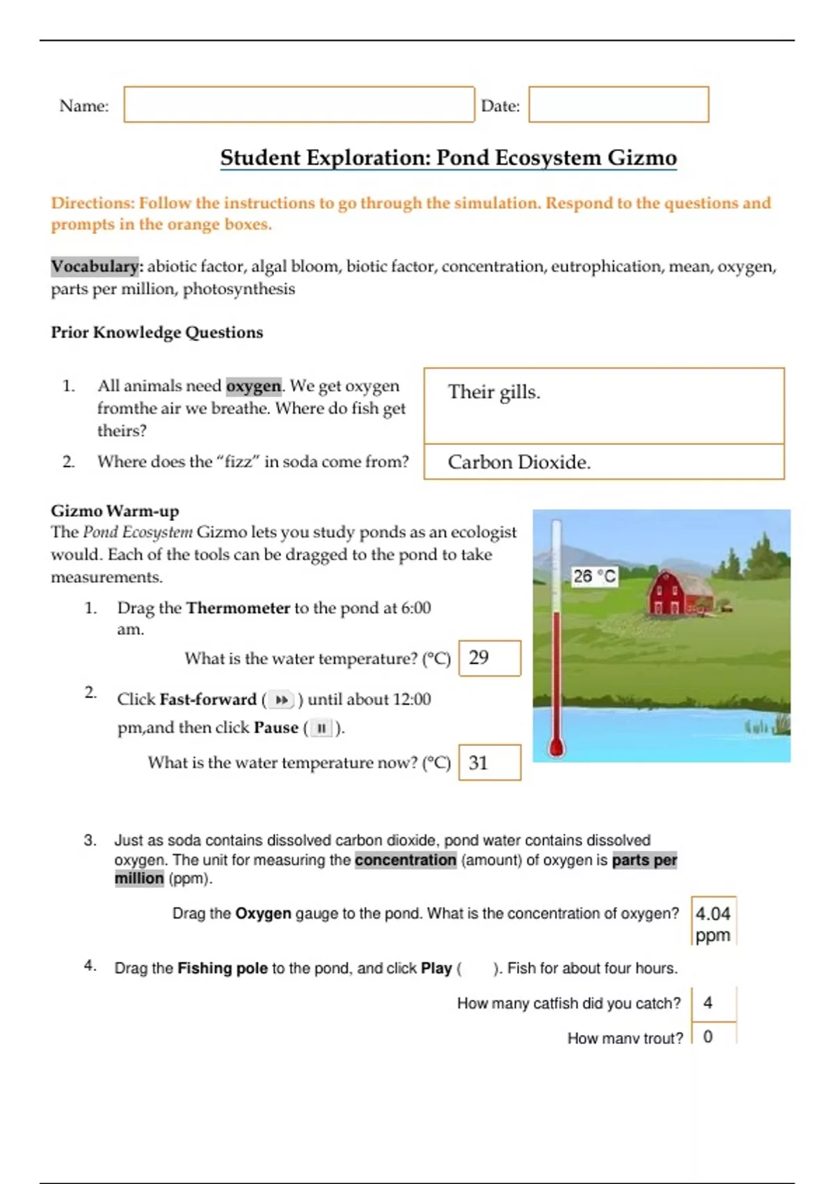 Student Exploration Pond Ecosystem Gizmo