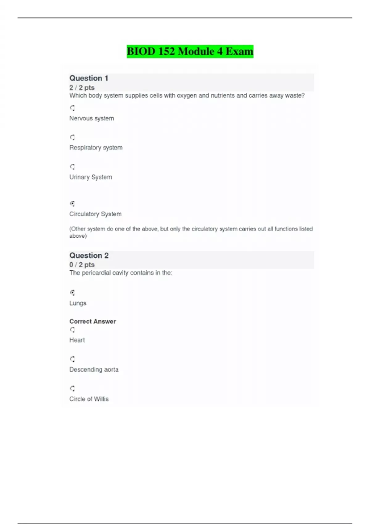 biod 152 module 4 exam 3 versions latest 2023 2024