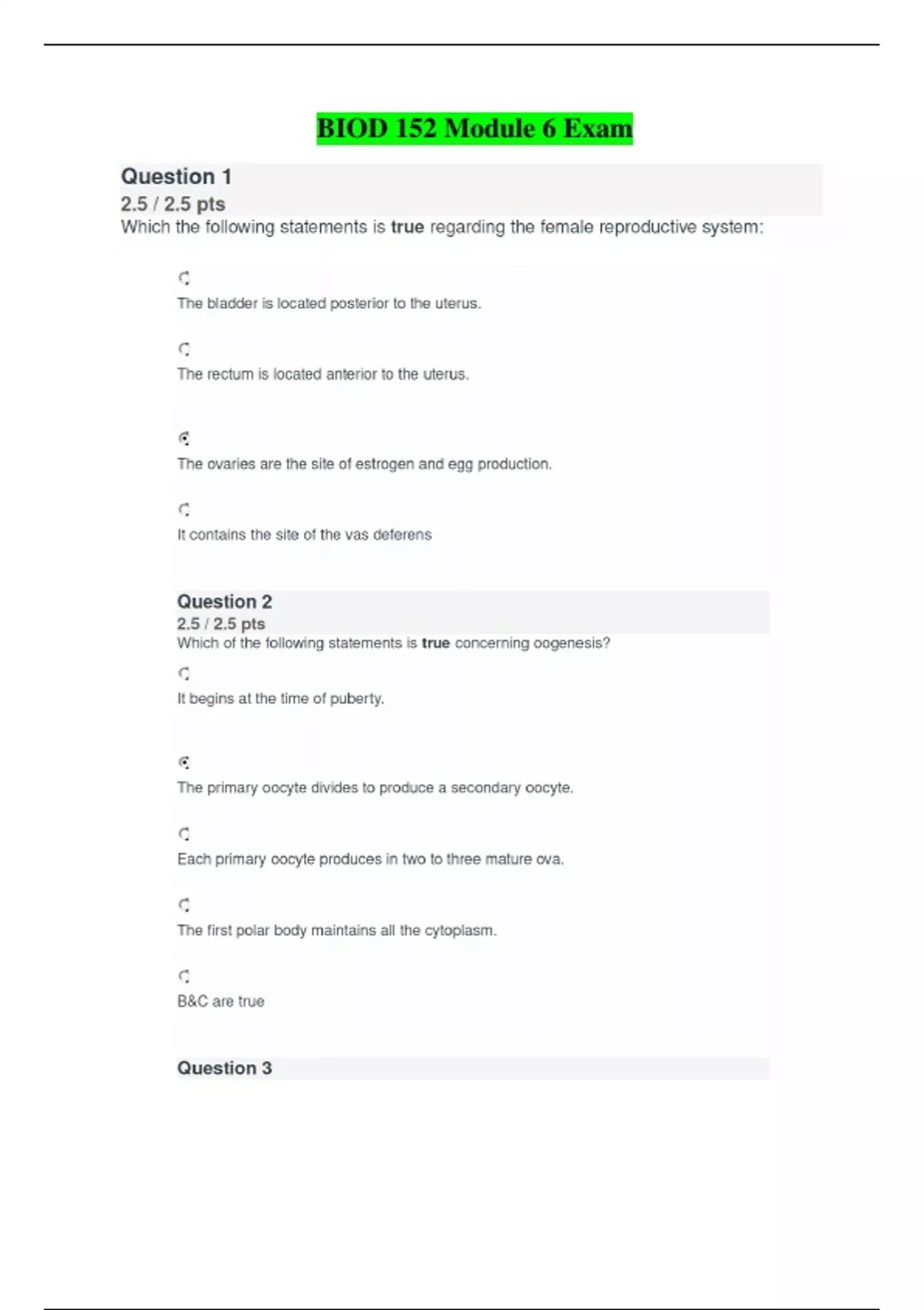 biod 152 module 6 exam 3 versions latest 2023 2024