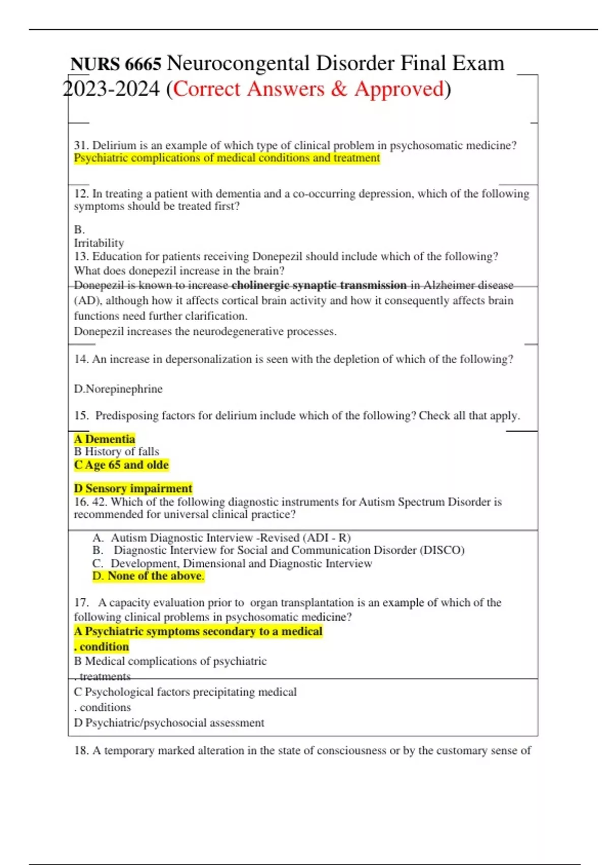 NURS 6665 Neurocongental Disorder Final Exam (Correct Answers & Approved)