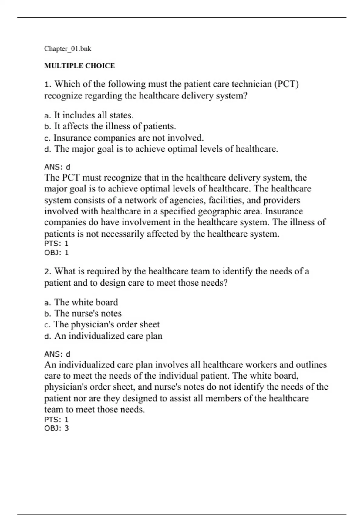 The PCT must recognize that in the healthcare delivery system, the