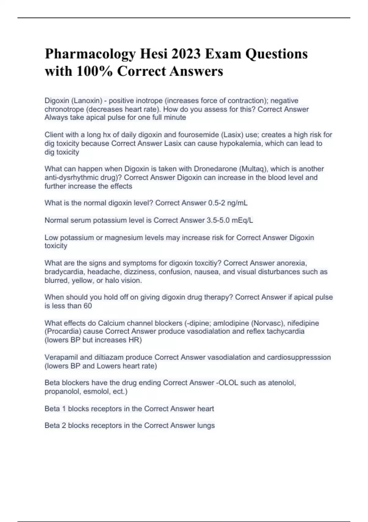 Pharmacology Hesi 2023 Exam Questions with 100% Correct Answers