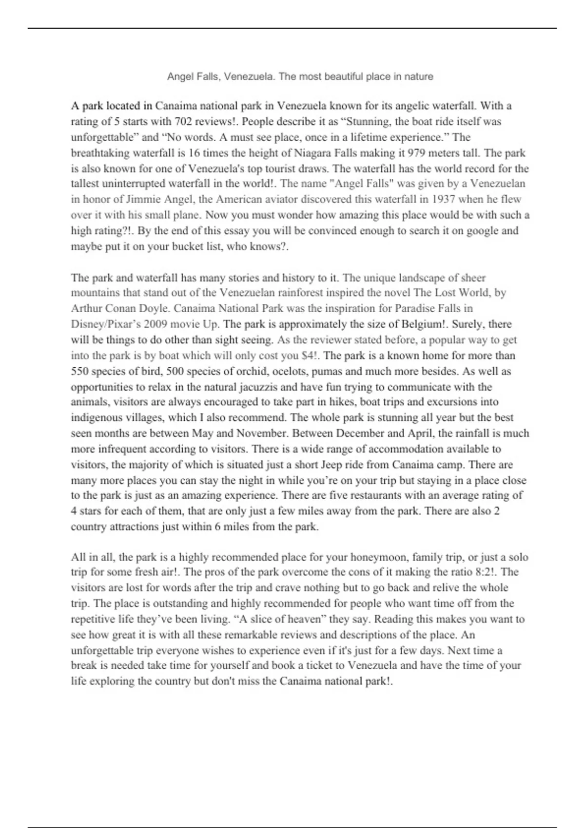 A descriptive essay used in an exam about a really beautiful place in the world.