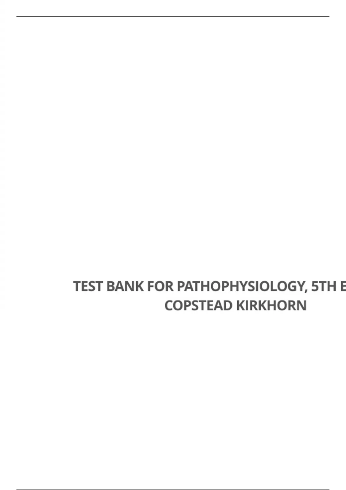 TEST BANK FOR PATHOPHYSIOLOGY, 5TH EDITION: COPSTEAD KIRKHORN