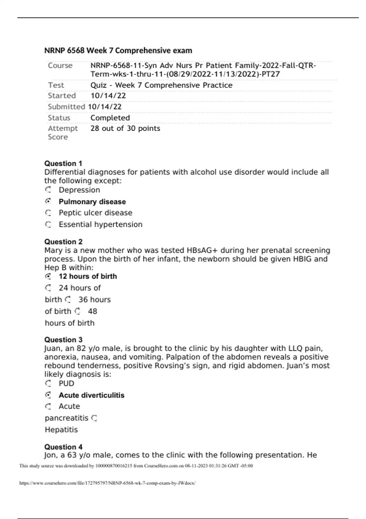 NRNP 6558 Week 7 Comprehensive Exam (Due October) Supreme Verified Answers