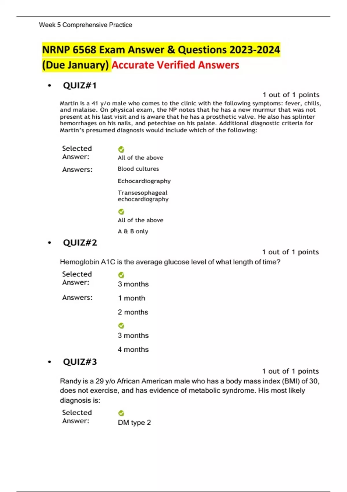 NRNP 6558 (Summer QTR) 2023-2024 Exams questions and Answers