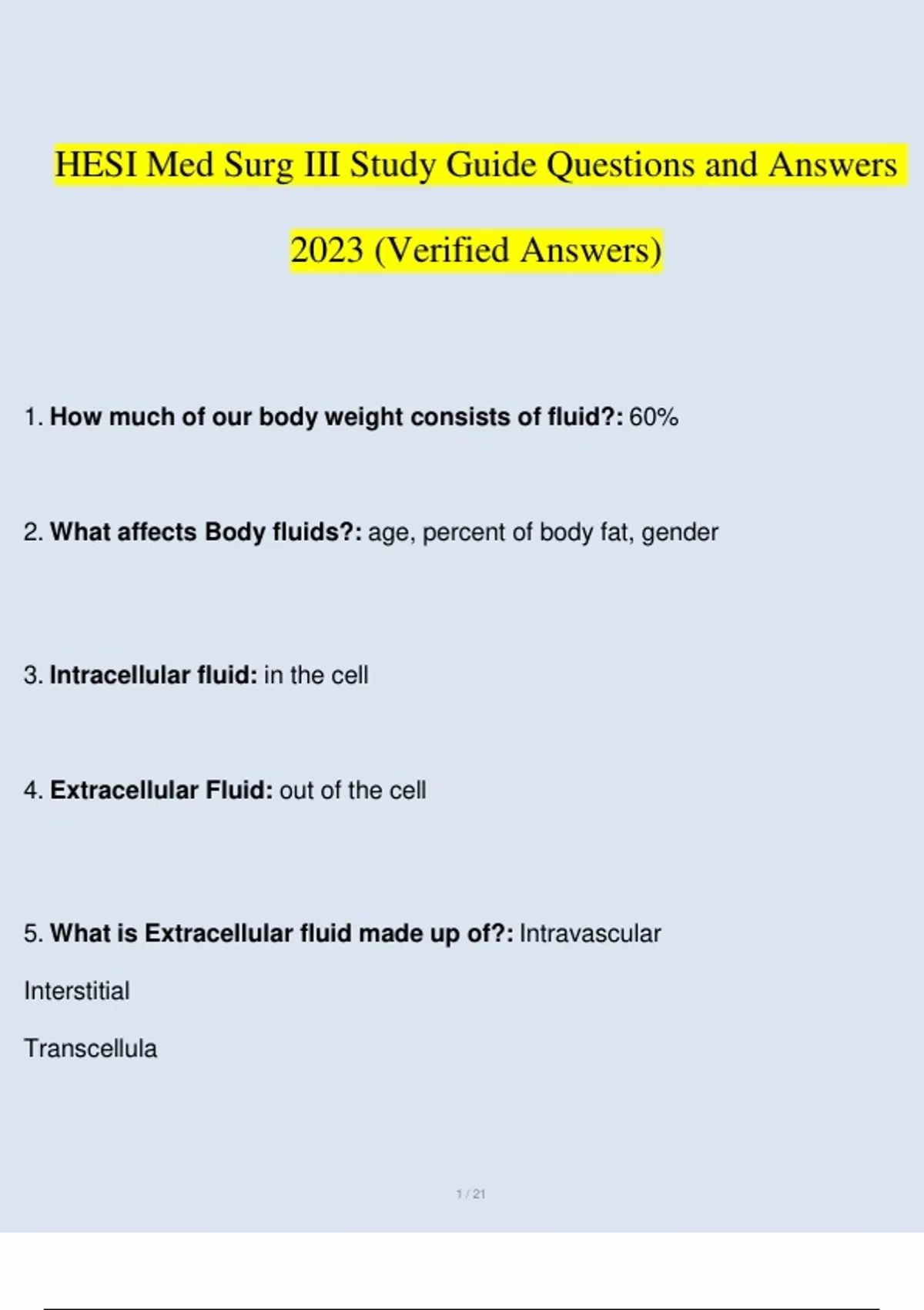 HESI Med Surg III Study Guide Questions and Answers 2023 (Verified Answers) HESI Med Surg III Study Guide Questions and Answers 2023 (Verified Answers)