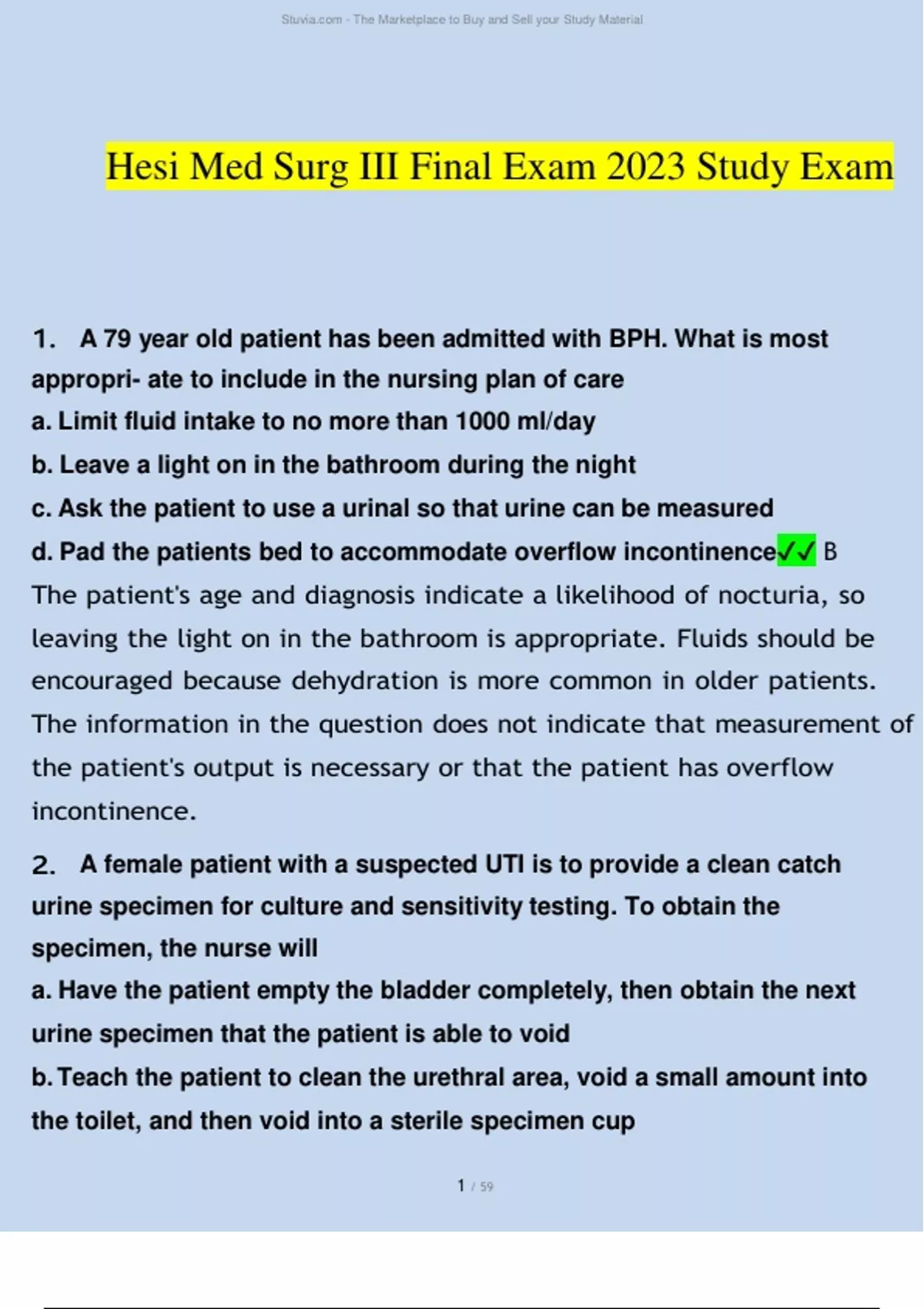 HESI Med Surg III Final Exam Study Guide Questions and Answers 2023 (Verified Answers) HESI Med Surg III Final Exam Study Guide Questions and Answers 2023 (Verified Answers)