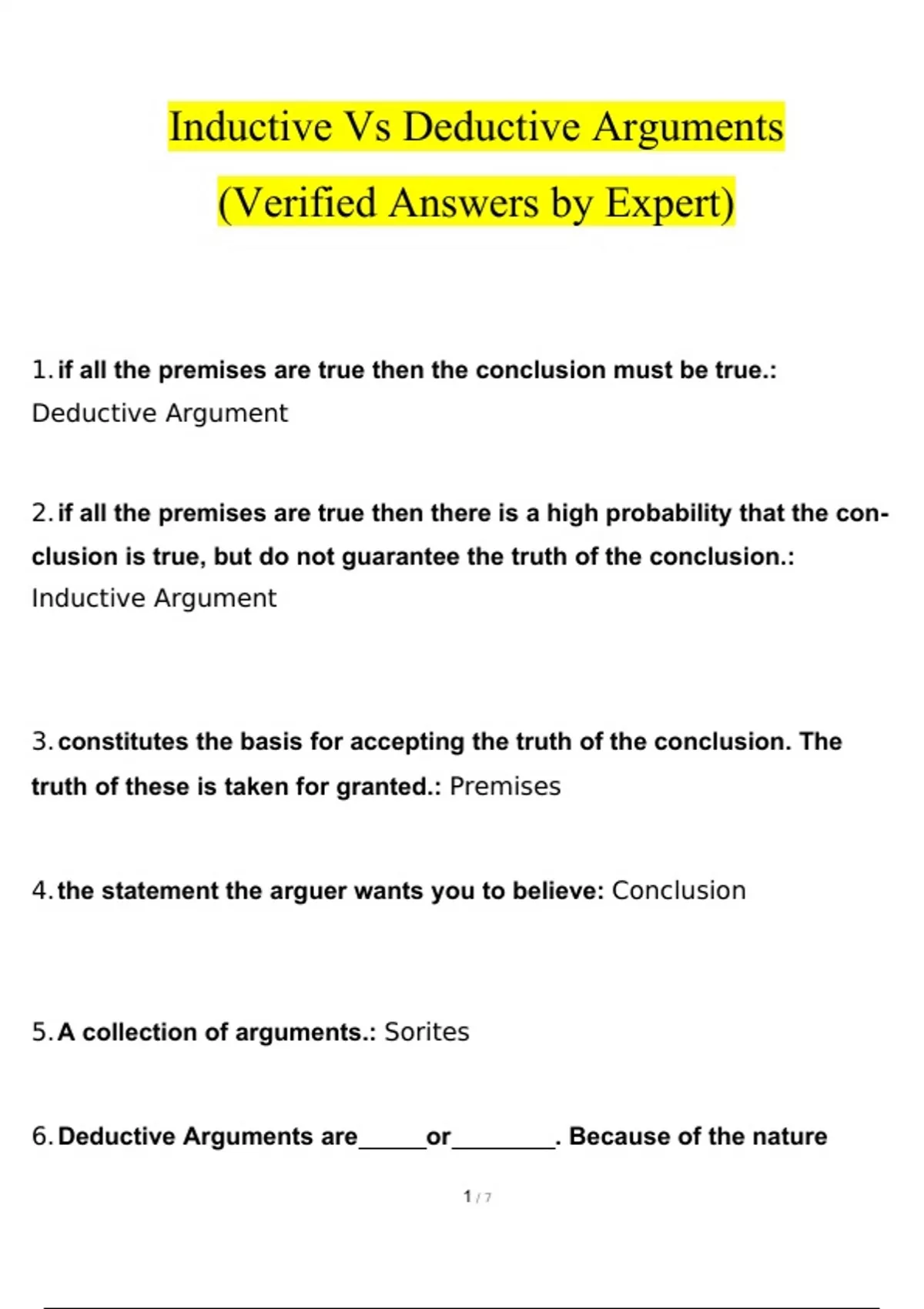 Inductive Vs Deductive Arguments questions and answers latest [100% correct answers]