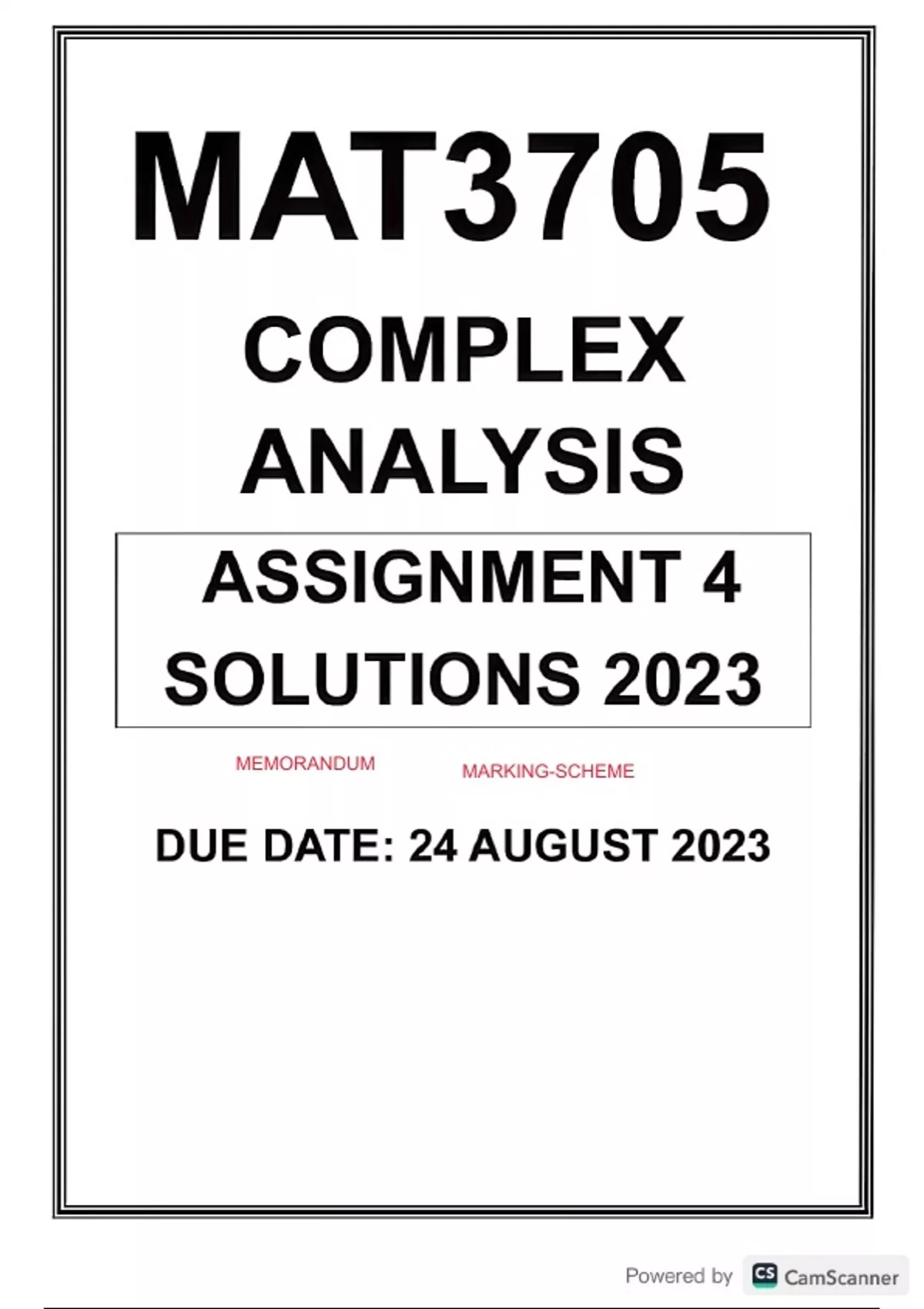 mat3705 assignment 4 solutions 2023 unisa complex