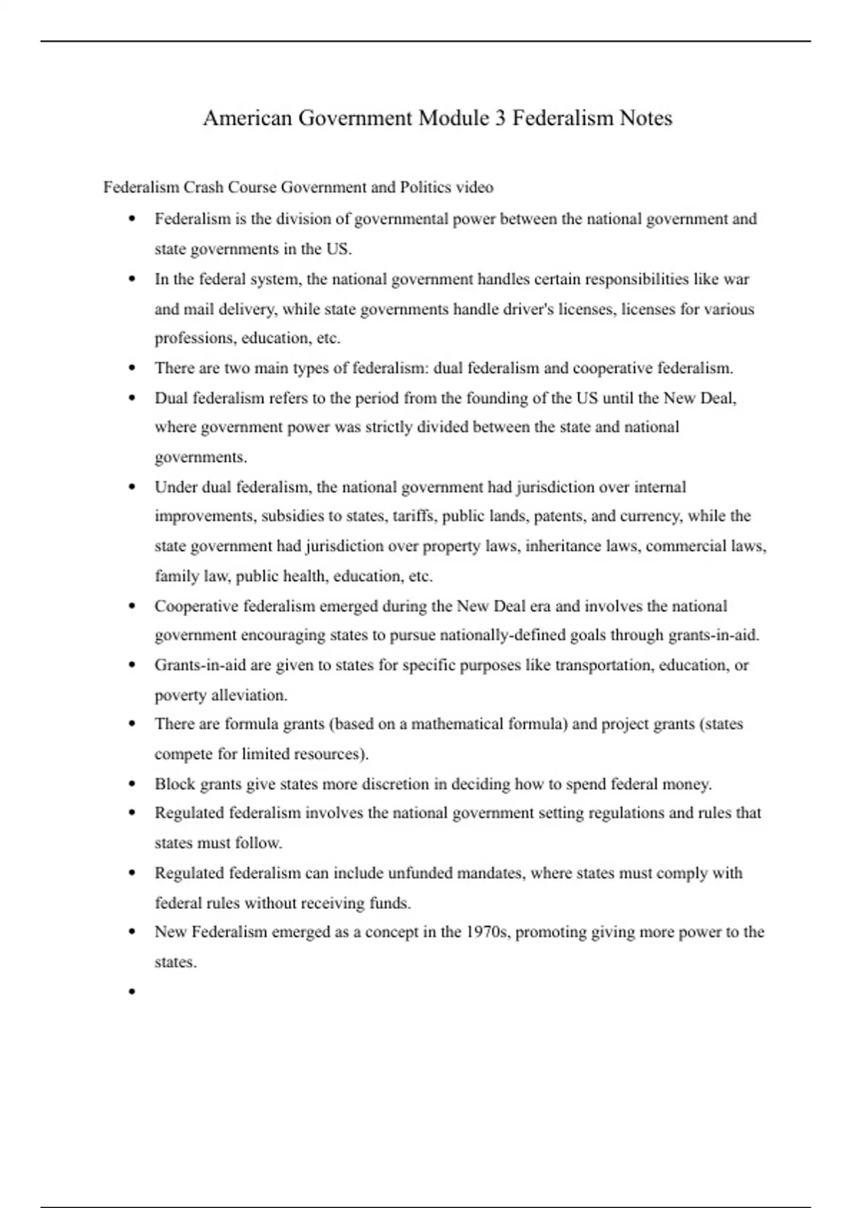 Helpful notes based on Federalism