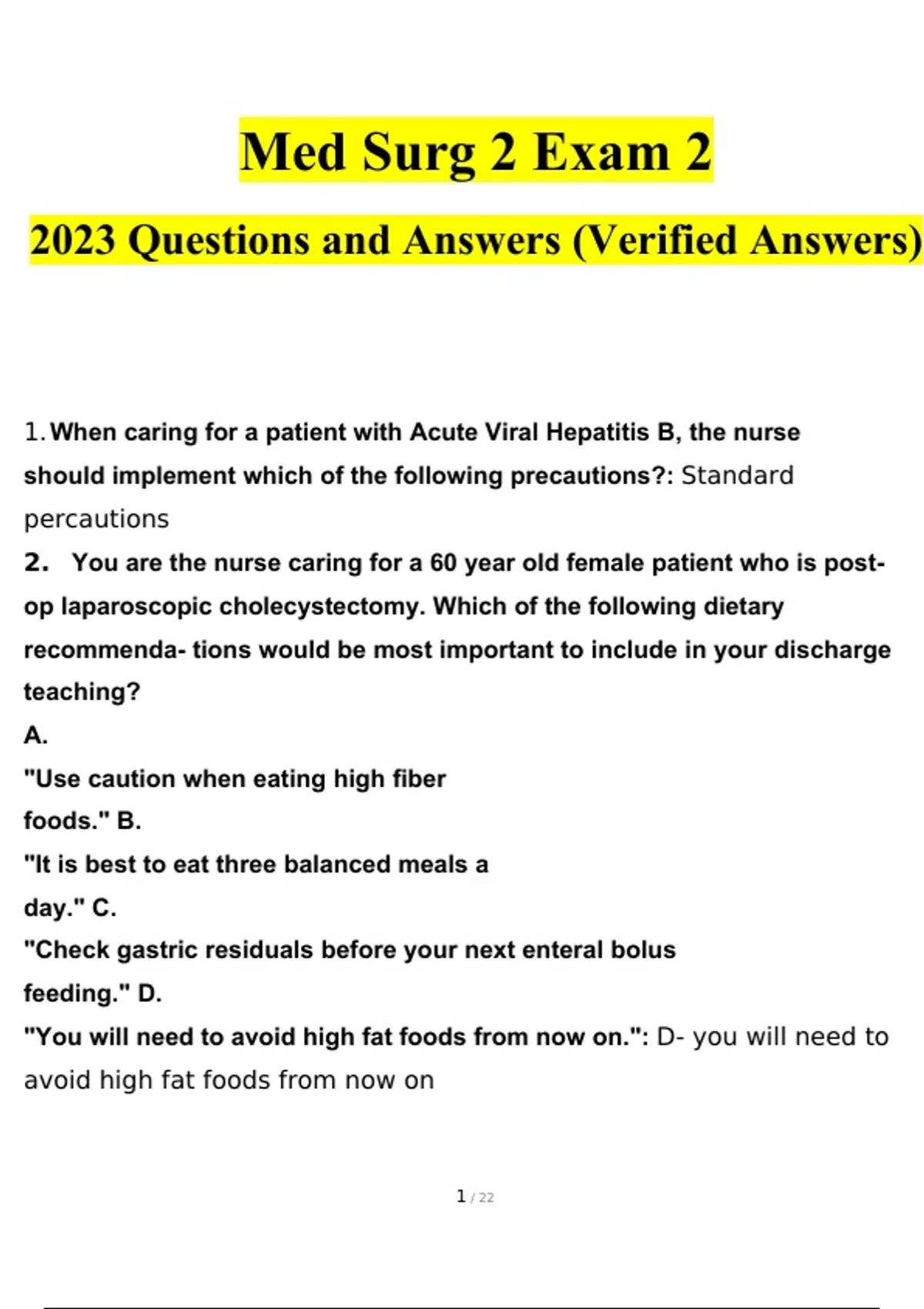 med surg 2 exam 2 questions and answers latest 202