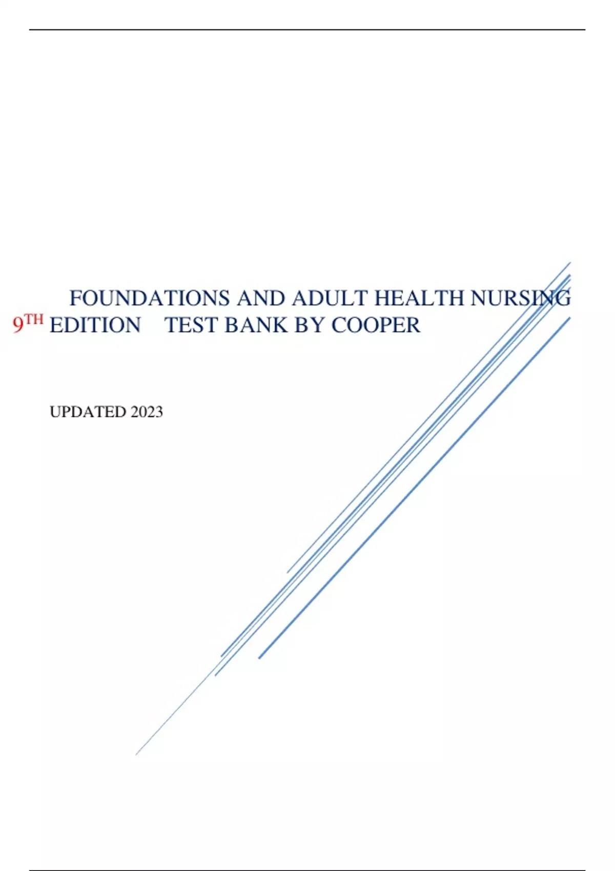 FOUNDATIONS AND ADULT HEALTH NURSING 9TH EDITION TEST BANK BY COOPER UPDATED 2023