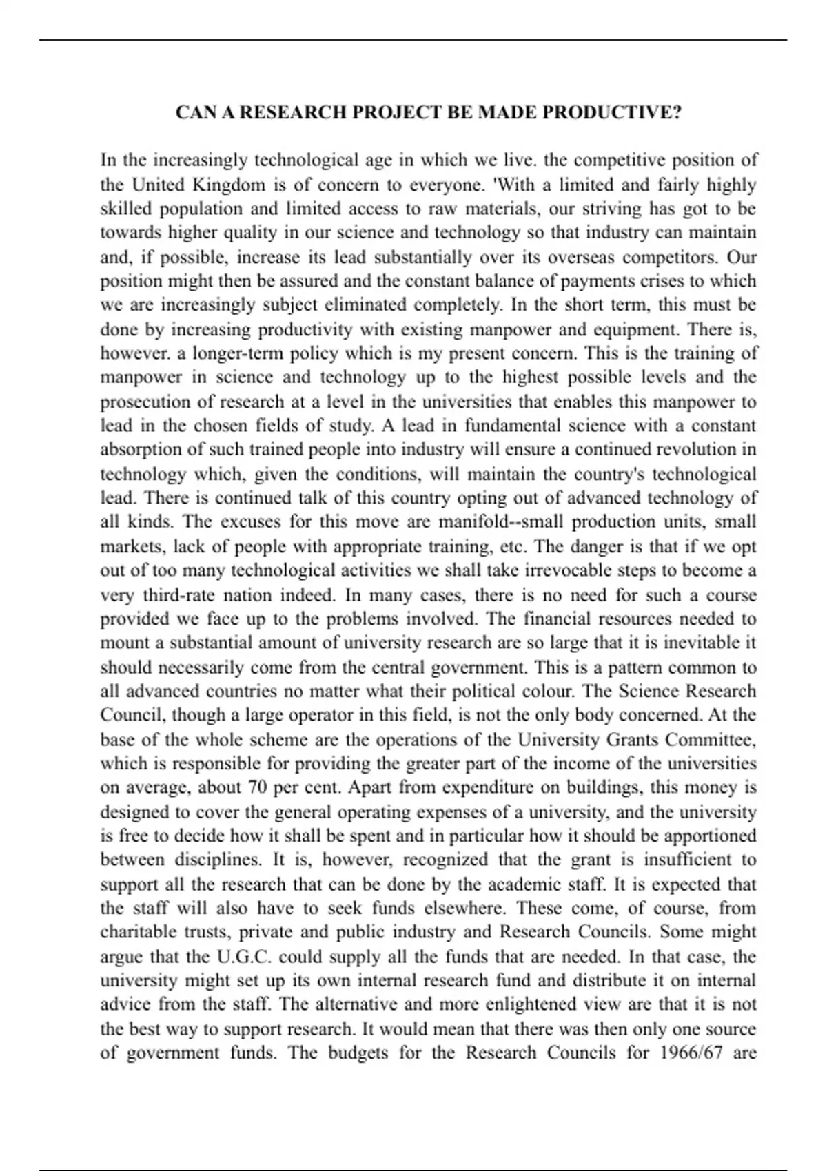 of government funds. The budgets for the Research Councils for 1966/67 are