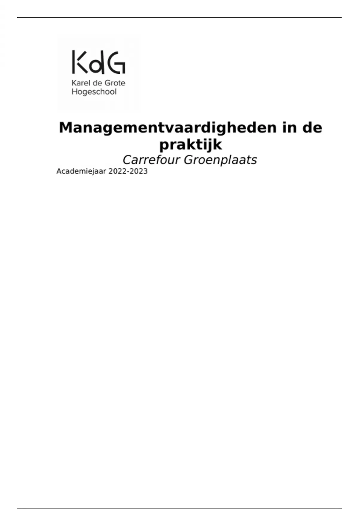 Ondanks COVID-19 hebben vele ondernemingen deze crisis overleefd en dit door gebruik te maken van de managementtopics die centraal staan in dit rapport. Carl Peeters, directeur Carrefour Groenplaats, koppelt dagelijks theoretische concepten aan de praktijk en dit met als doel zijn onderneming een succes te maken. In ons onderzoek staan de managementvaardigheden van Carl Peeters centraal. Aan de hand van verschillende wetenschappelijke theorieën onderzochten we de capaciteiten van meneer Peeters op de werkvloer. In dit rapport komen ‘belemmerend leiderschap’, ‘(ir)rationele leiders’, ‘diversiteit’, ‘efficiënt samenwerken’, ‘personeelstekorten’ en ’strategieën beleid’ aan bod. Die zes hoofdstukken hebben we omgevormd in volgende onderzoeksvragen: 1. Hoe pakt Carl Peeters zijn leidinggevende functie aan, zonder zijn personeel te belemmeren? 2. Hoe voorkomt Carl Peeters dat hij een irrationele manager is bij Carrefour Groenplaats? 3. Hoe managet Carl Peeters diversiteit in Carrefour Groenplaats? 4. Hoe pakt Carl Peeters de interactie aan bij Carrefour Groenplaats om een efficiënte samenwerking te bekomen? 5. Hoe kan Carl Peeters het personeelstekort inperken bij Carrefour Groenplaats? 6. Hoe optimaliseert Carl Peeters zijn rendement uit om maximale resultaten te halen voor de winkel? Ieder hoofdstuk wordt besproken met het oog op wetenschappelijke bronnen en praktijk, waarvoor we Carrefour Groenplaats hebben geïnterviewd. De inzichten die tijdens deze analyse werden opgedaan, zijn vervat in een algemeen besluit op het einde van dit rapport. Wij wensen u veel leesplezier!   Ik behaalde 17,5/20 (allemaal goede bronnen en maakt jouw werk veel makkelijker)