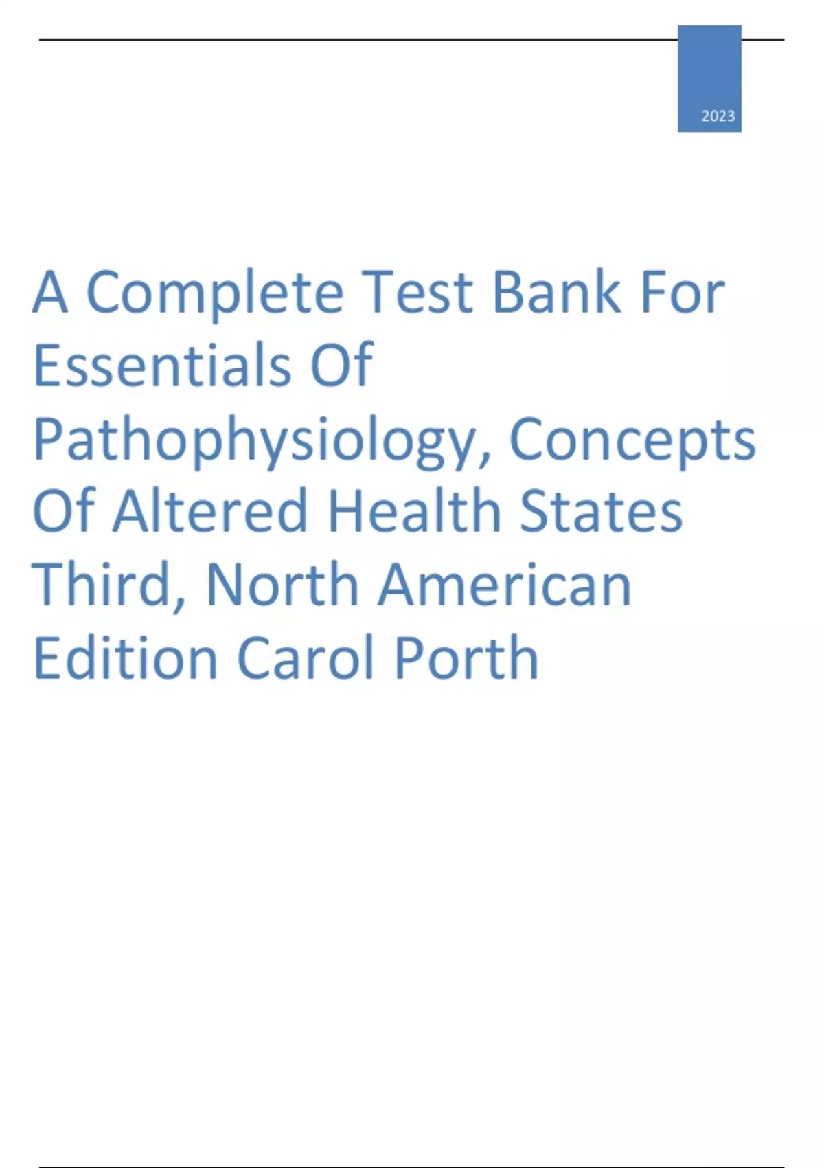 A Complete Test Bank For Essentials Of Pathophysiology, Concepts Of Altered Health States Third, North American Edition Carol Porth