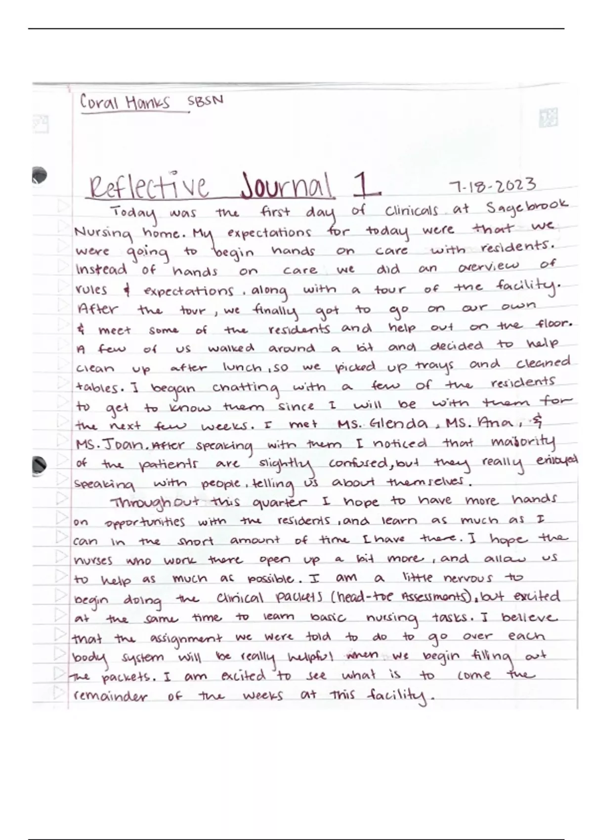 This is a reflective journal from the first week clinicals two.