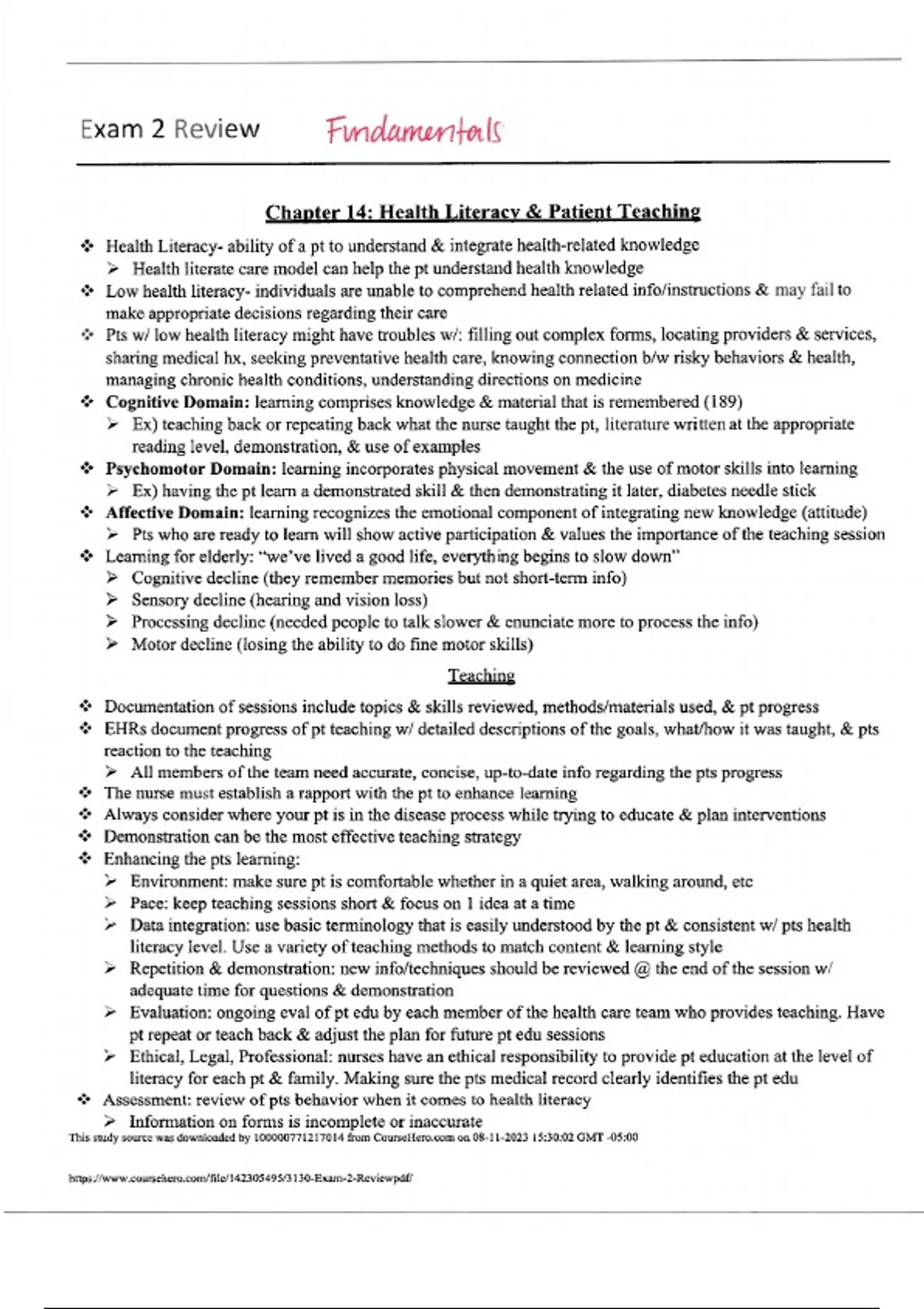 This is a study guide for both health assessment and fundamentals two