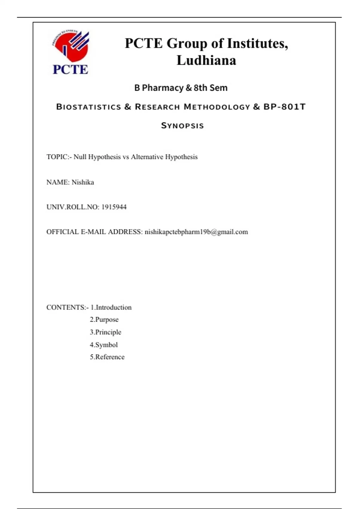 So this document is about the subject l-Biostatistics and Research Methodology. This subject would come in semester-8th of B. Pharmacy. Biostatistics is used to create statistics for every data, one should store in statistics form And there are lots of errors while doing that so there comes the null hypothesis and alternate hypothesis which describes the errors in you document and prevent from glfurther proceeding To understand further concept of errors, one should’ve knowledge of null and alternate hypothesis.