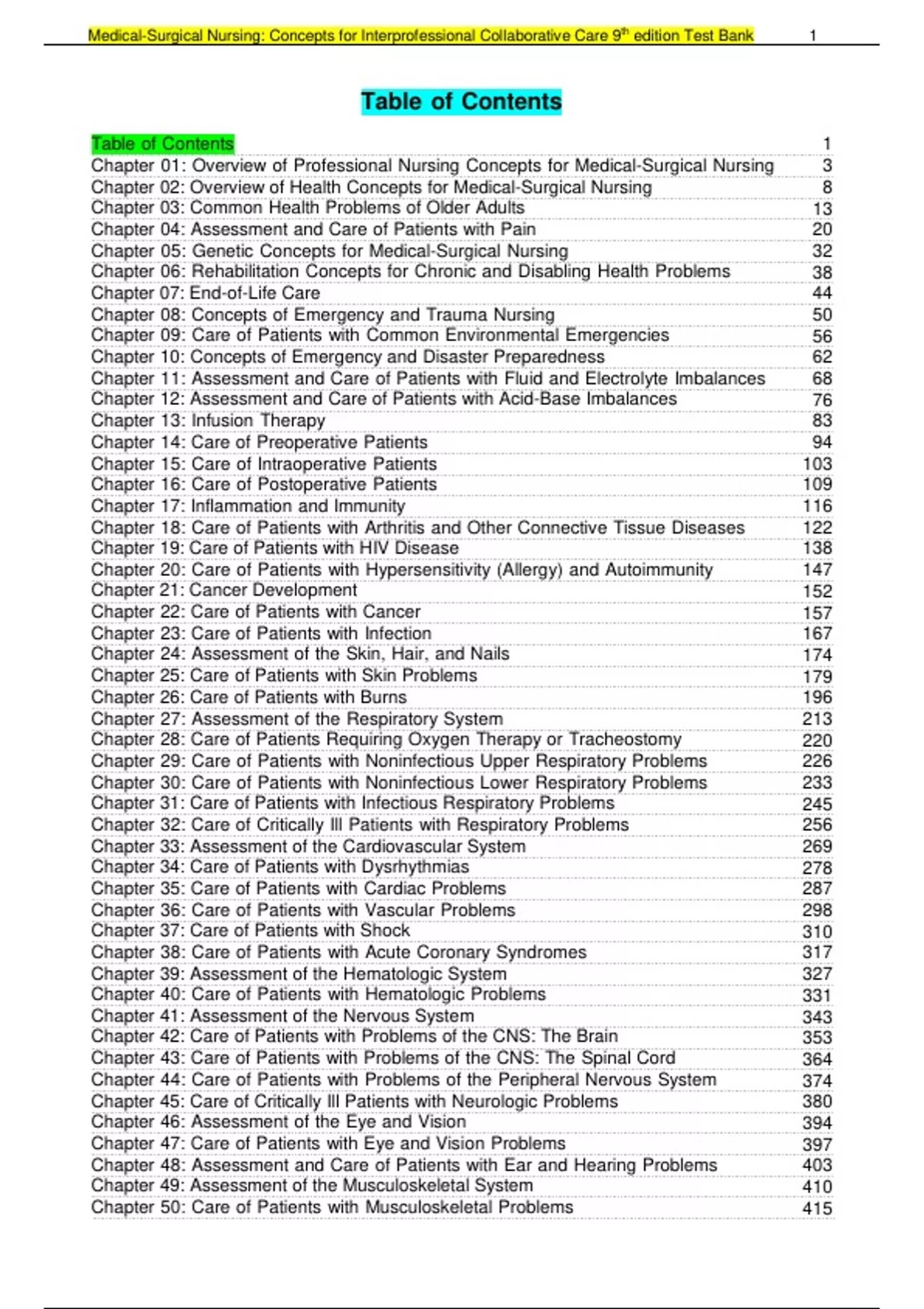 Medical Surgical Nursing 9th Edition Test Bank by Ignatavicius Workman