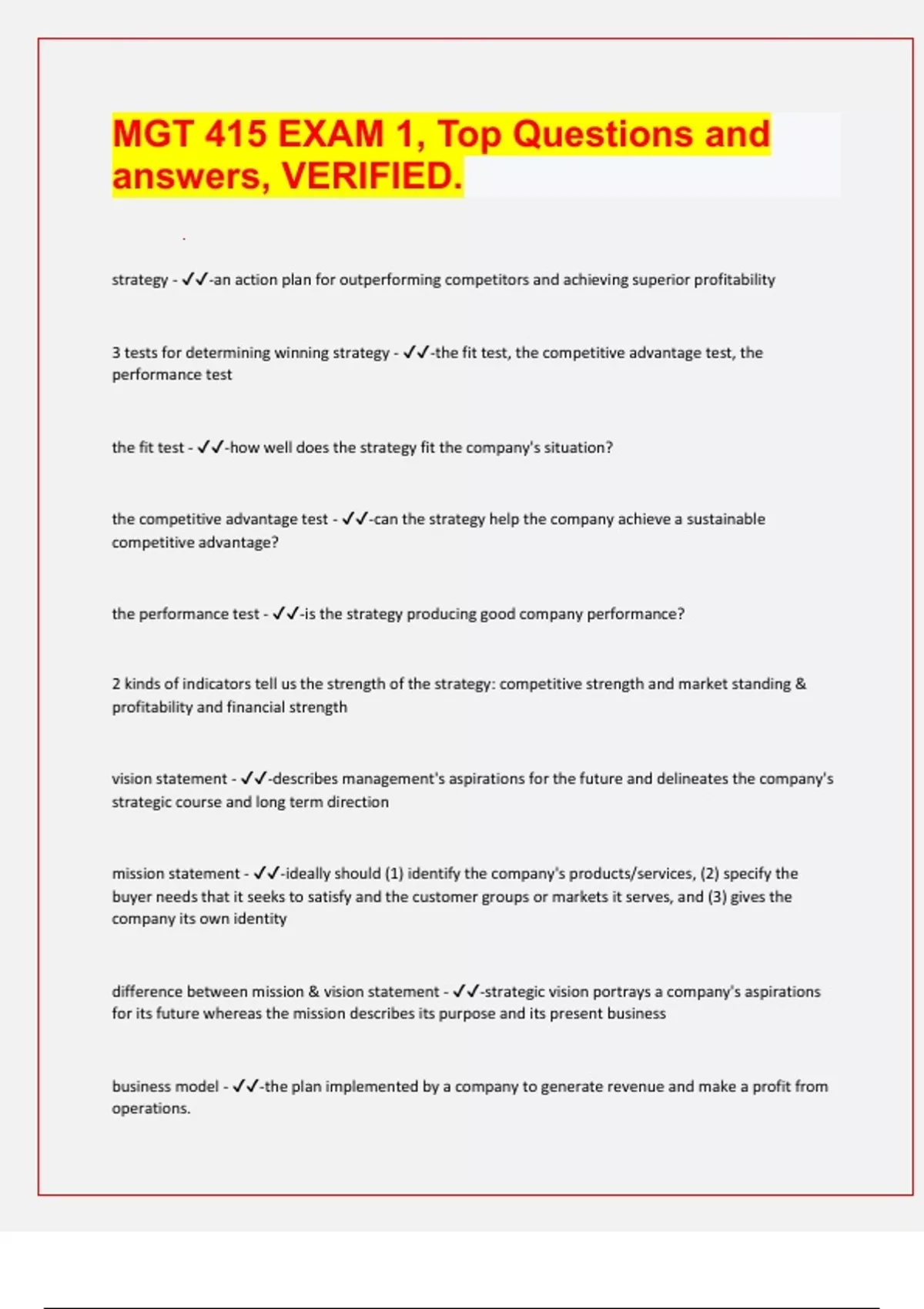 MGT 415 EXAM 1, Top Questions and answers, VERIFIED.