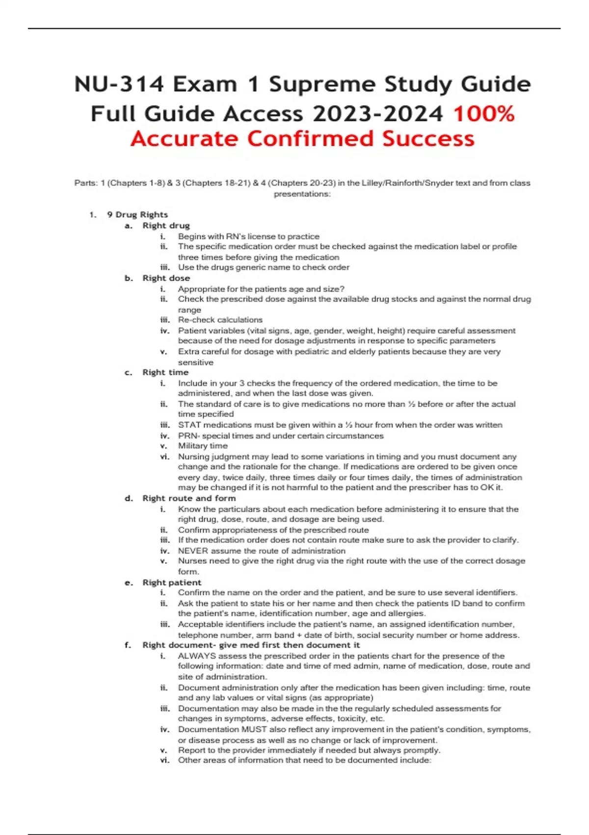 NU-314 Exam 1 Supreme Study Guide Full Guide Access % Accurate Confirmed Success