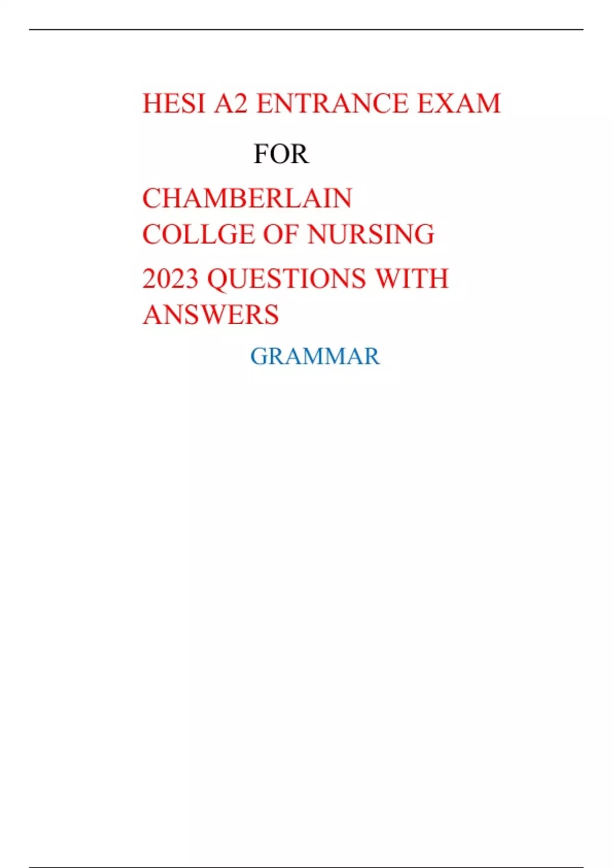 HESI A2 ENTRANCE EXAM FOR CHAMBERLAIN COLLGE OF NURSING 2023 QUESTIONS WITH ANSWERS GRAMMAR