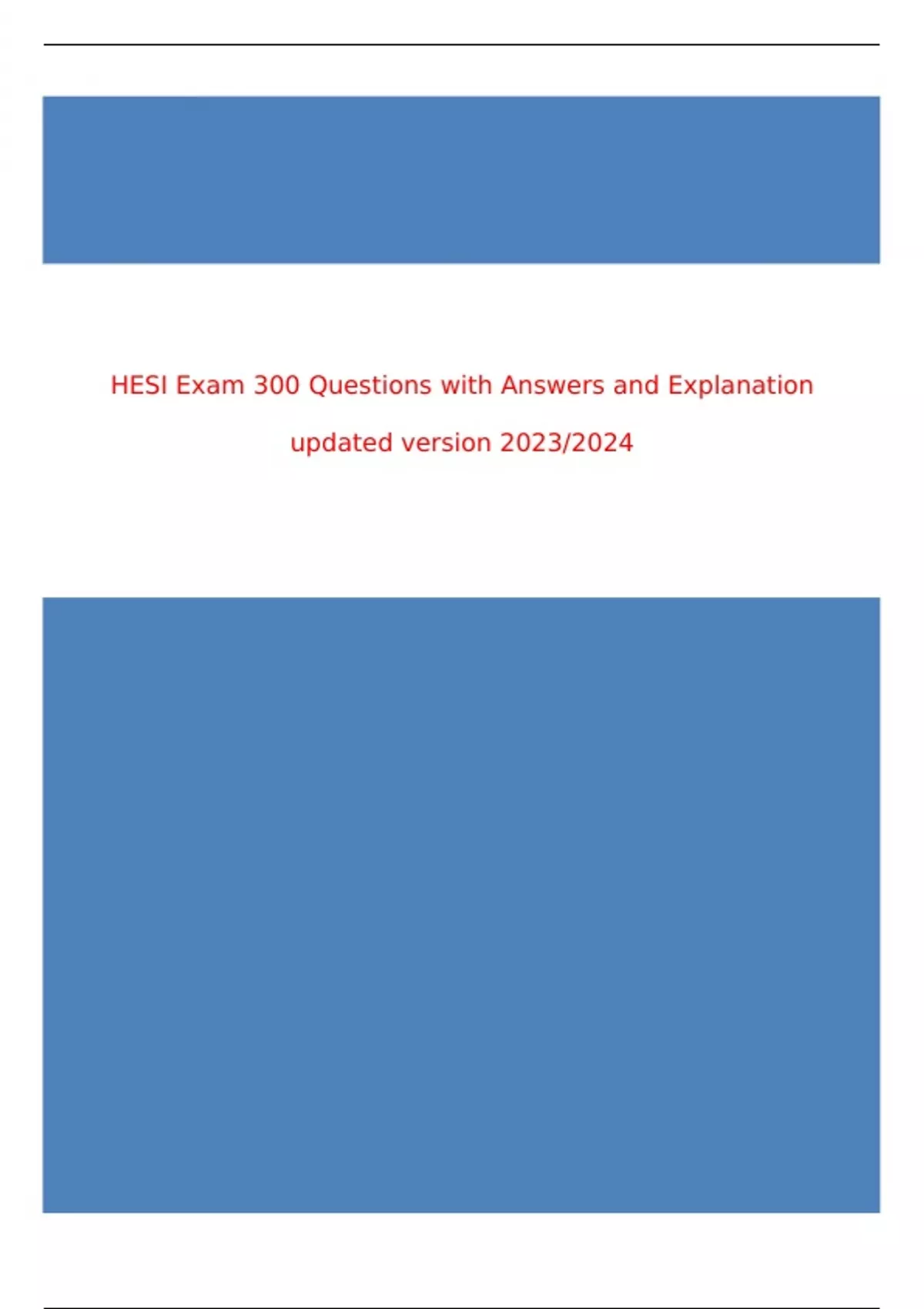 HESI Exam 300 Questions with Answers and Explanation updated version 2023/2024