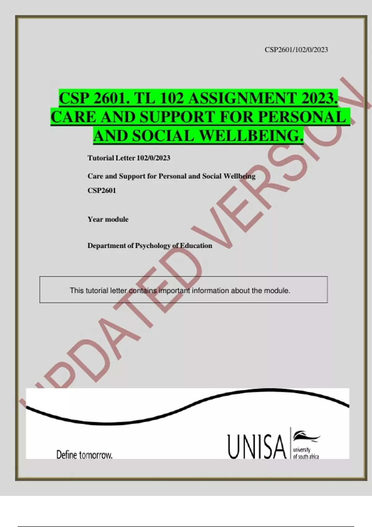 CSP 2601. TL 102 ASSIGNMENT 2023. CARE AND SUPPORT FOR PERSONAL AND SOCIAL WELLBEING.
