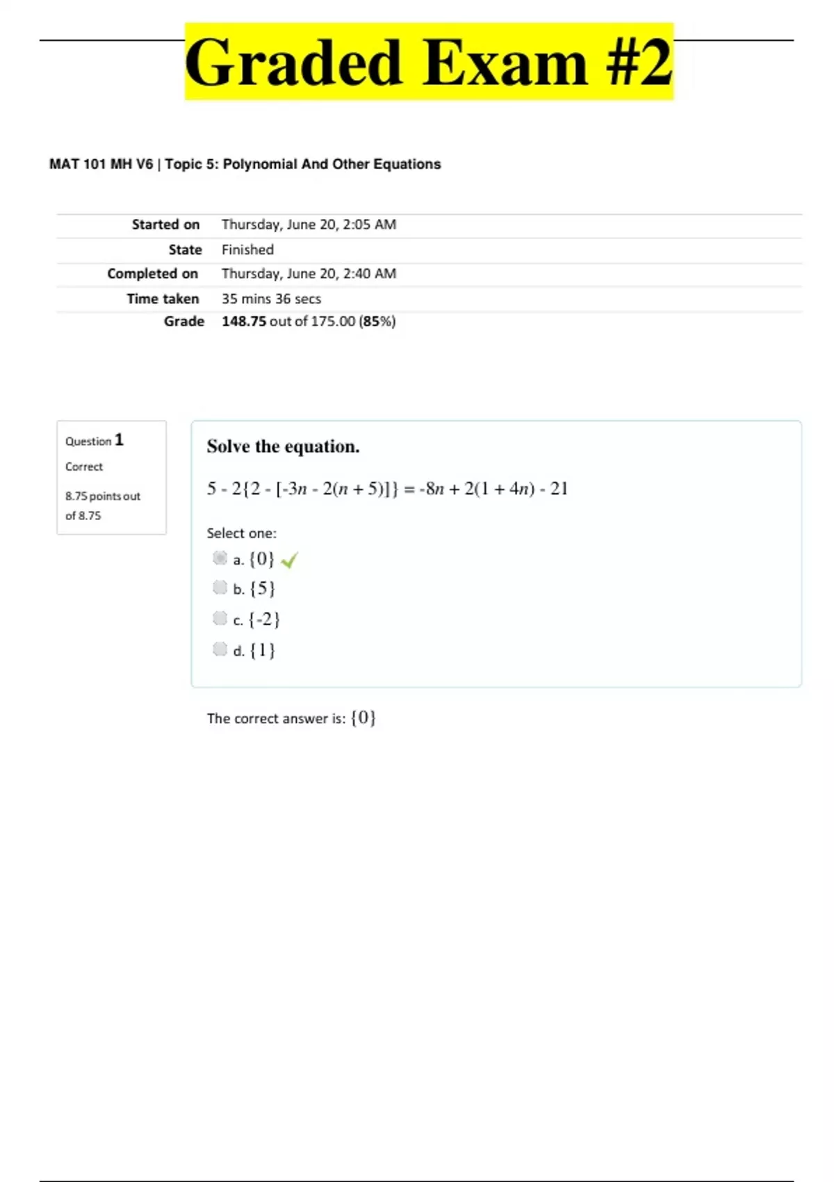 MAT 101 Graded Exam #2 (Straighterline)