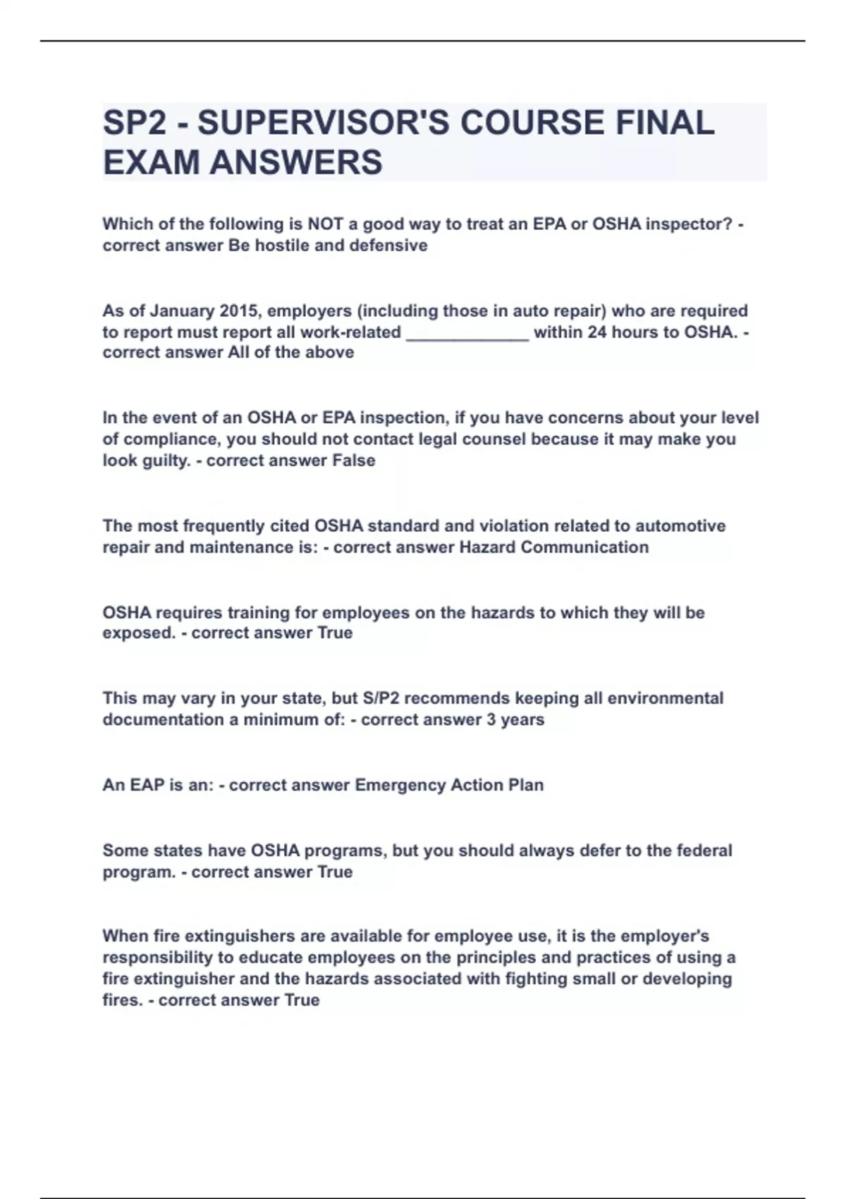 SP2 - SUPERVISOR'S COURSE FINAL EXAM ANSWERS|UPDATED&VERIFIED|GRADED A|GUARANTEED SUCCESS