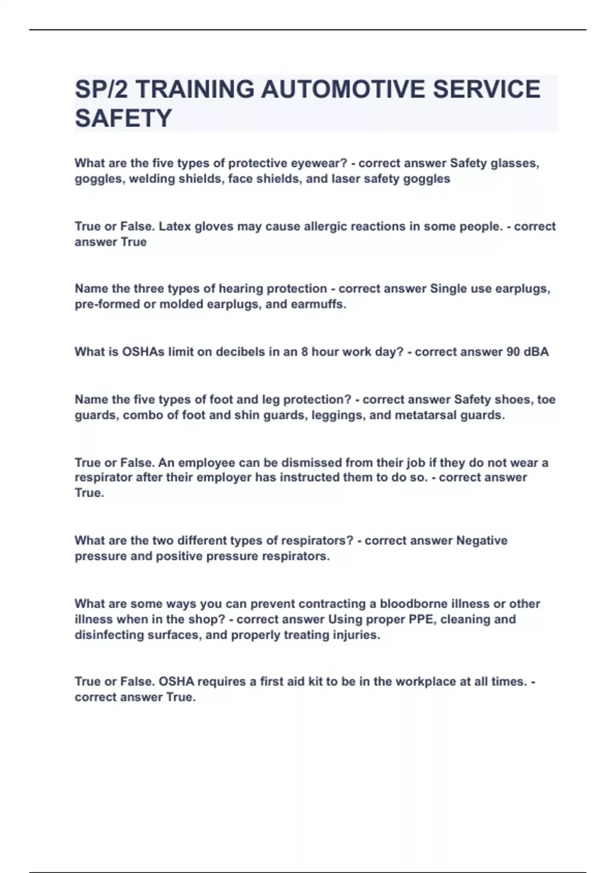 SP2 TRAINING AUTOMOTIVE SERVICE SAFETY|UPDATED&VERIFIED|GRADED A|GUARANTEED SUCCESS