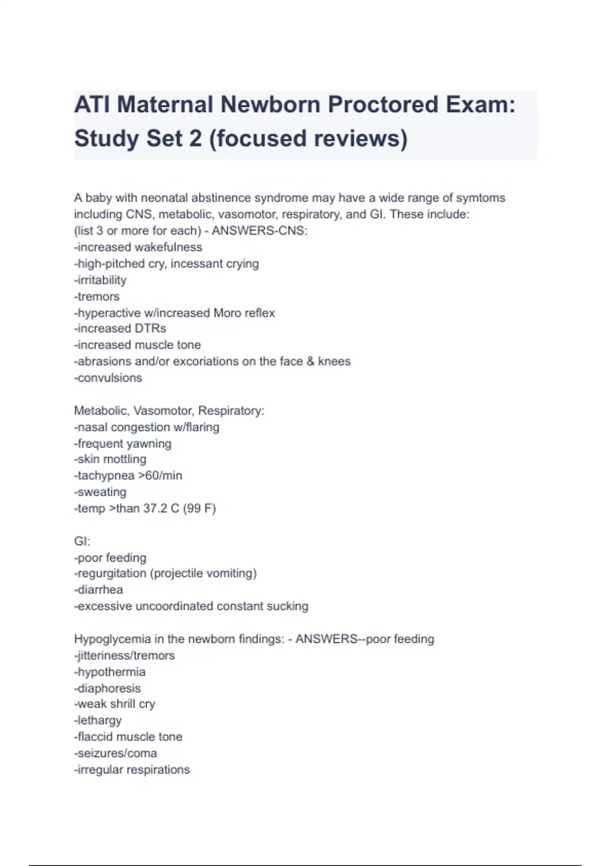 ATI Maternal Newborn Proctored Exam: Study Set 2 (focused reviews)2023