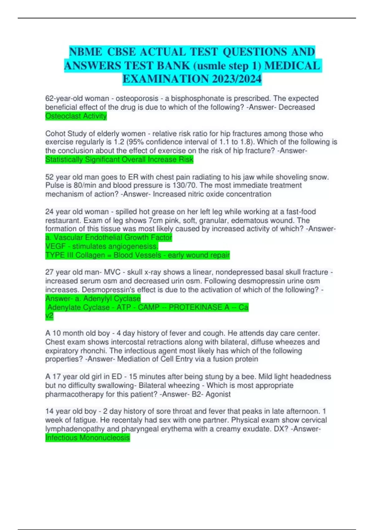 NBME CBSE ACTUAL TEST QUESTIONS AND ANSWERS TEST BANK (usmle step 1) MEDICAL EXAMINATION 2023/2024