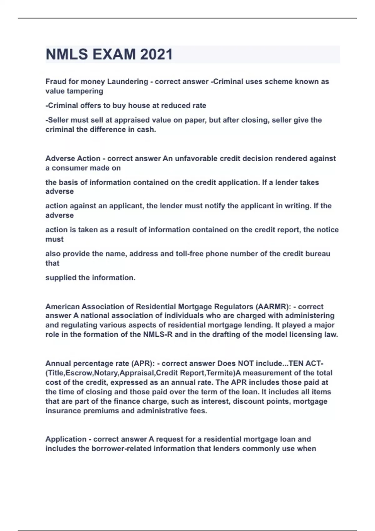 NMLS EXAM 2021|UPDATED&VERIFIED|100% SOLVED|GUARANTEED SUCCESS