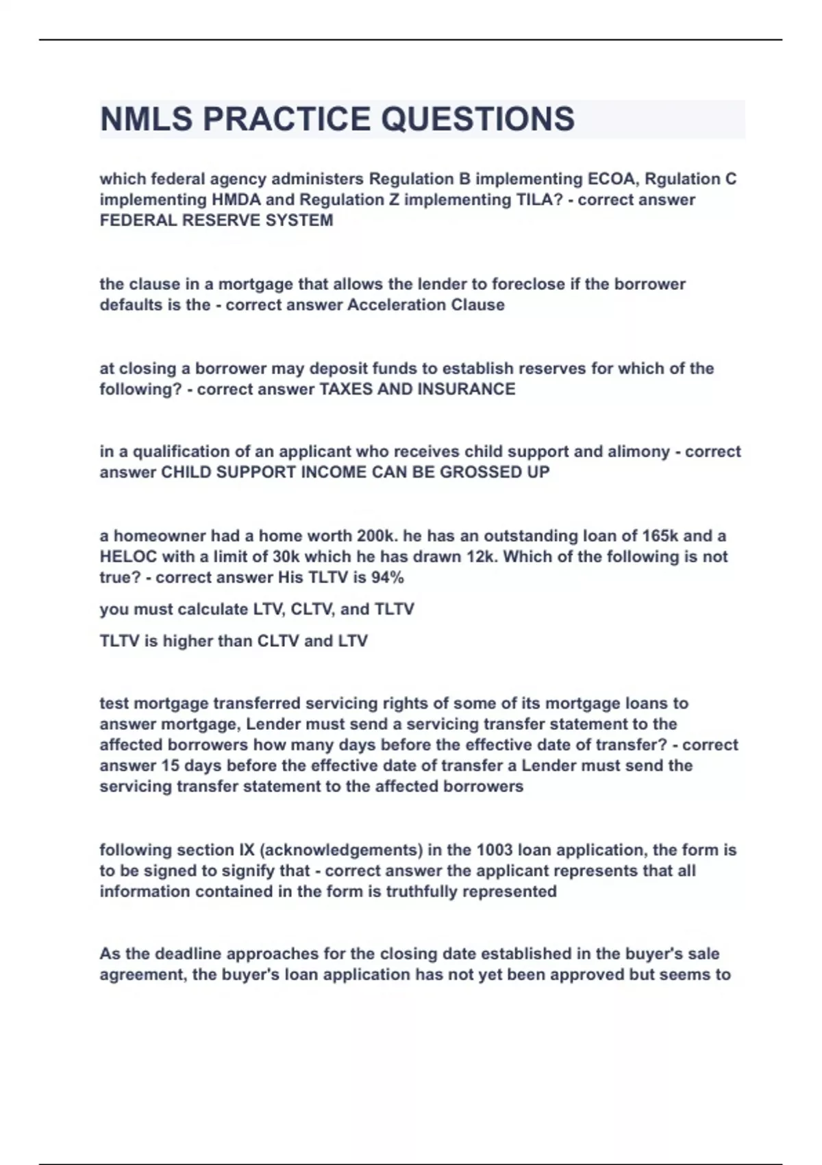 nmls practice questionsupdatedverified100 solv