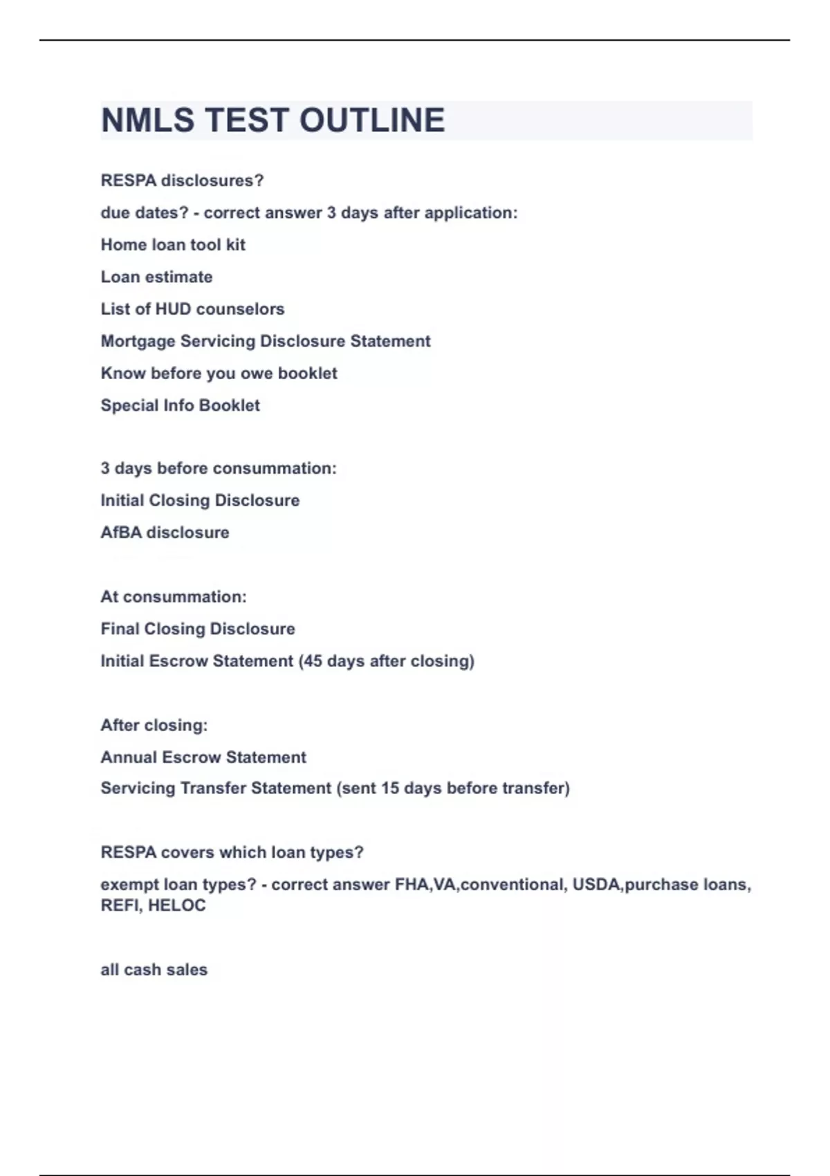 NMLS TEST OUTLINE|UPDATED&VERIFIED|100% SOLVED|GUARANTEED SUCCESS