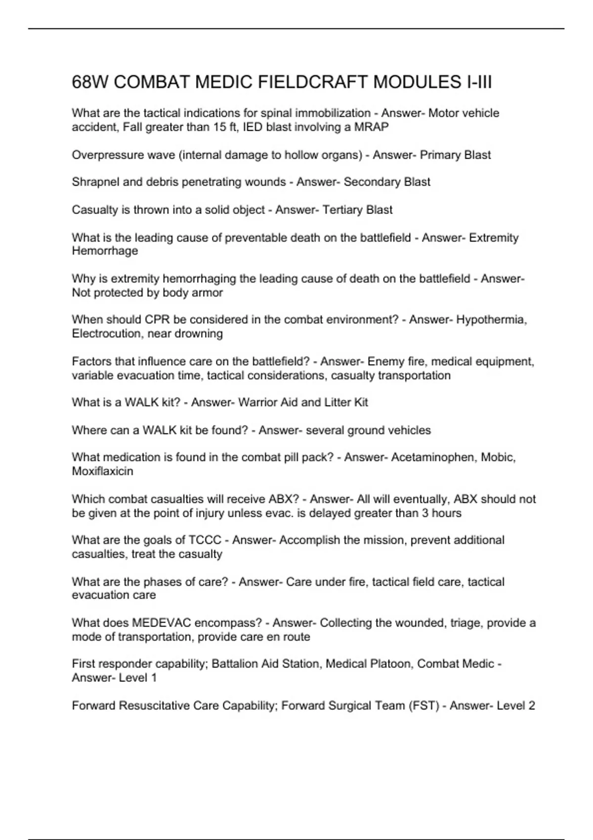 68W COMBAT MEDIC FIELDCRAFT MODULES I-III