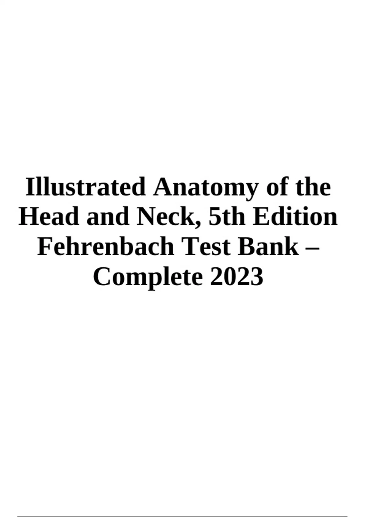 Test Bank For Illustrated Anatomy of the Head and Neck 5th Edition By Fehrenbach | VERIFIED 2023/2024