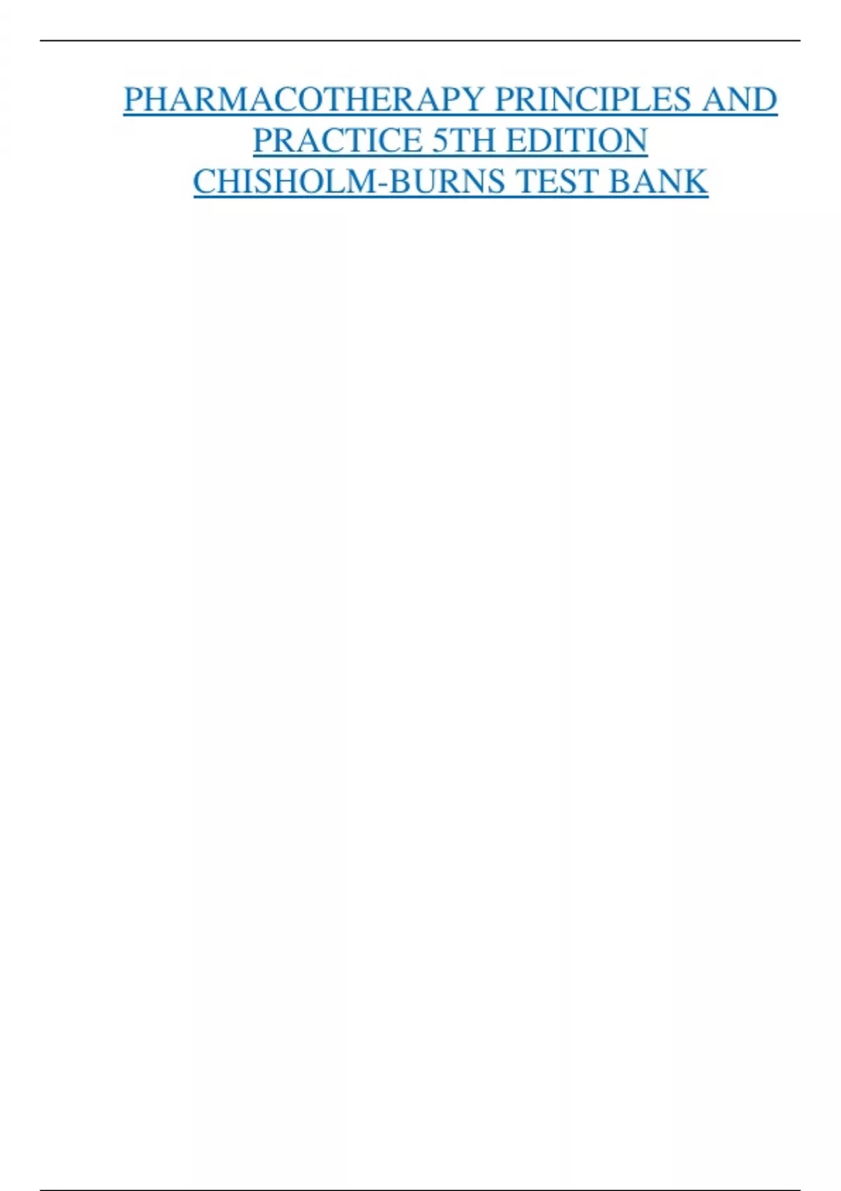 Pharmacotherapy_Principles_and_Practice_5th_Edition_Chisholm_Burns_Test_Bank Pharmacotherapy_Principles_and_Practice_5th_Edition_Chisholm_Burns_Test_Bank Pharmacotherapy_Principles_and_Practice_5th_Edition_Chisholm_Burns_Test_Bank