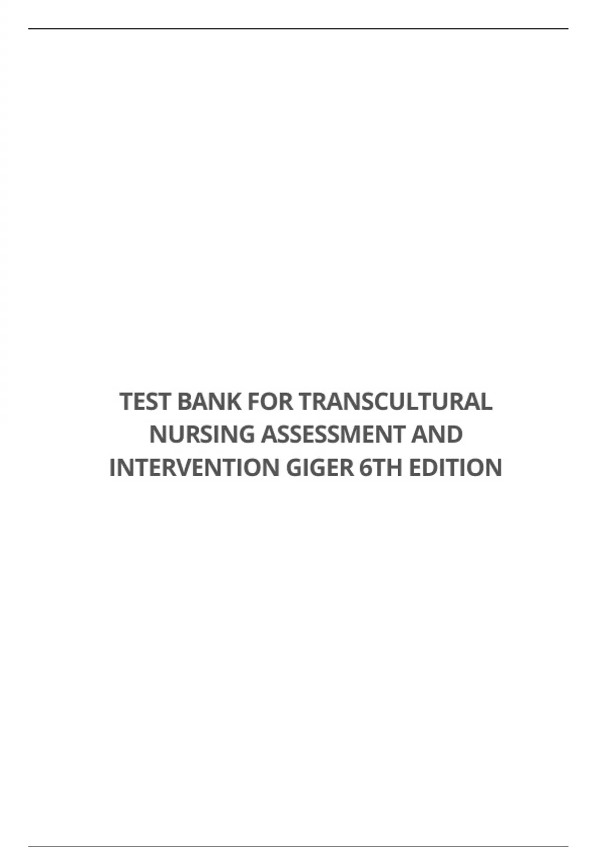 TEST BANK FOR TRANSCULTURAL NURSING ASSESSMENT AND INTERVENTION GIGER 6TH EDITION