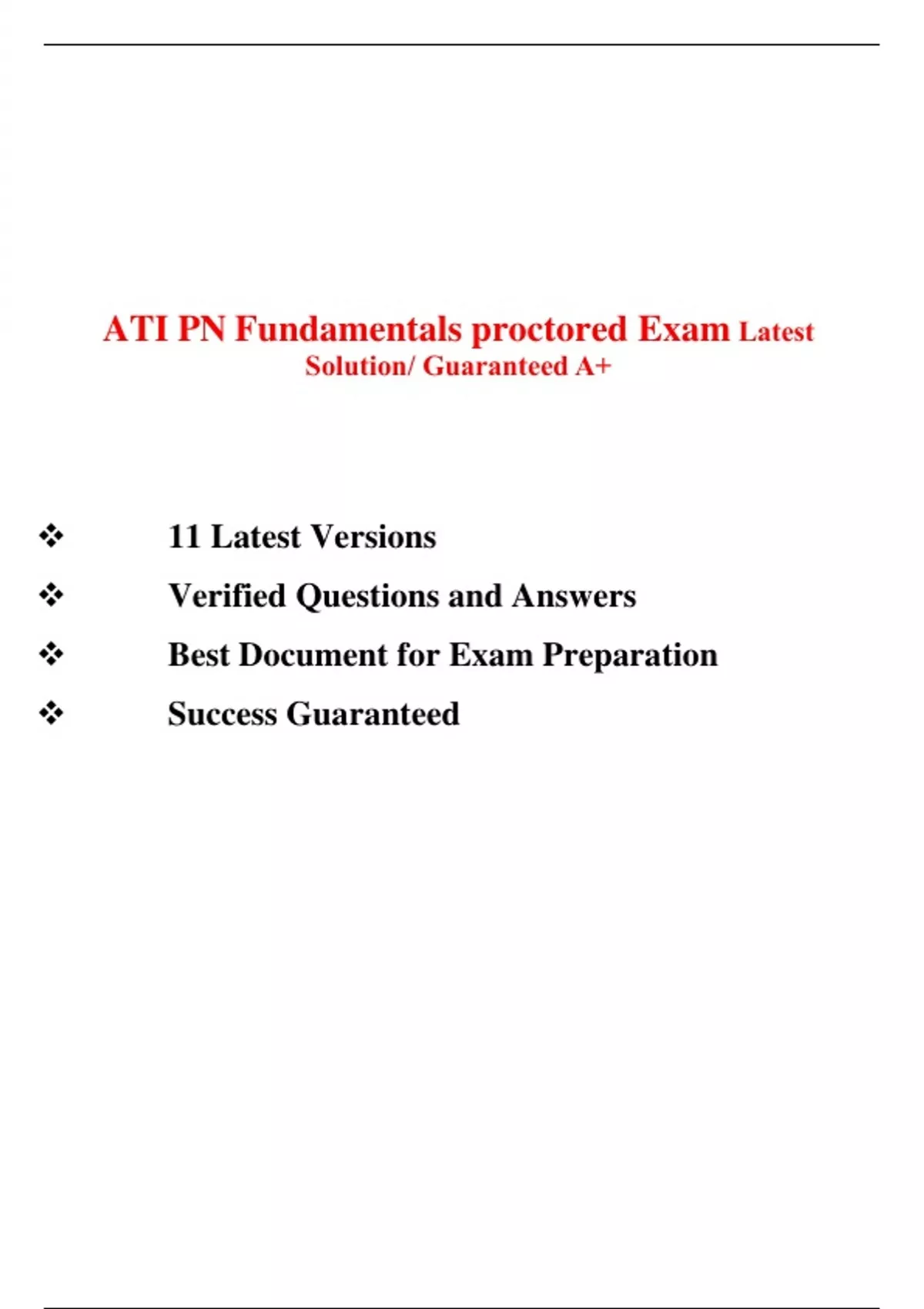 ATI PN Fundamentals proctored Exam Latest Solution/ Guaranteed A+