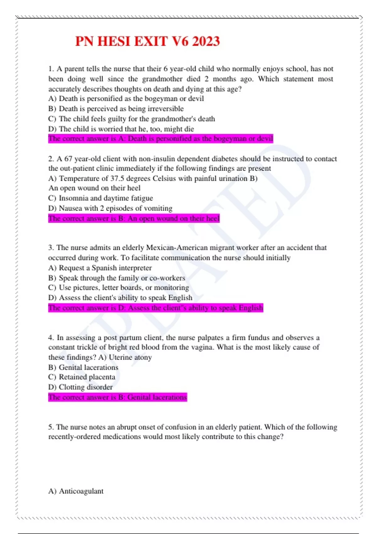 2023 Pn Hesi exit v6 latest updated exam questions with 100% correct answers
