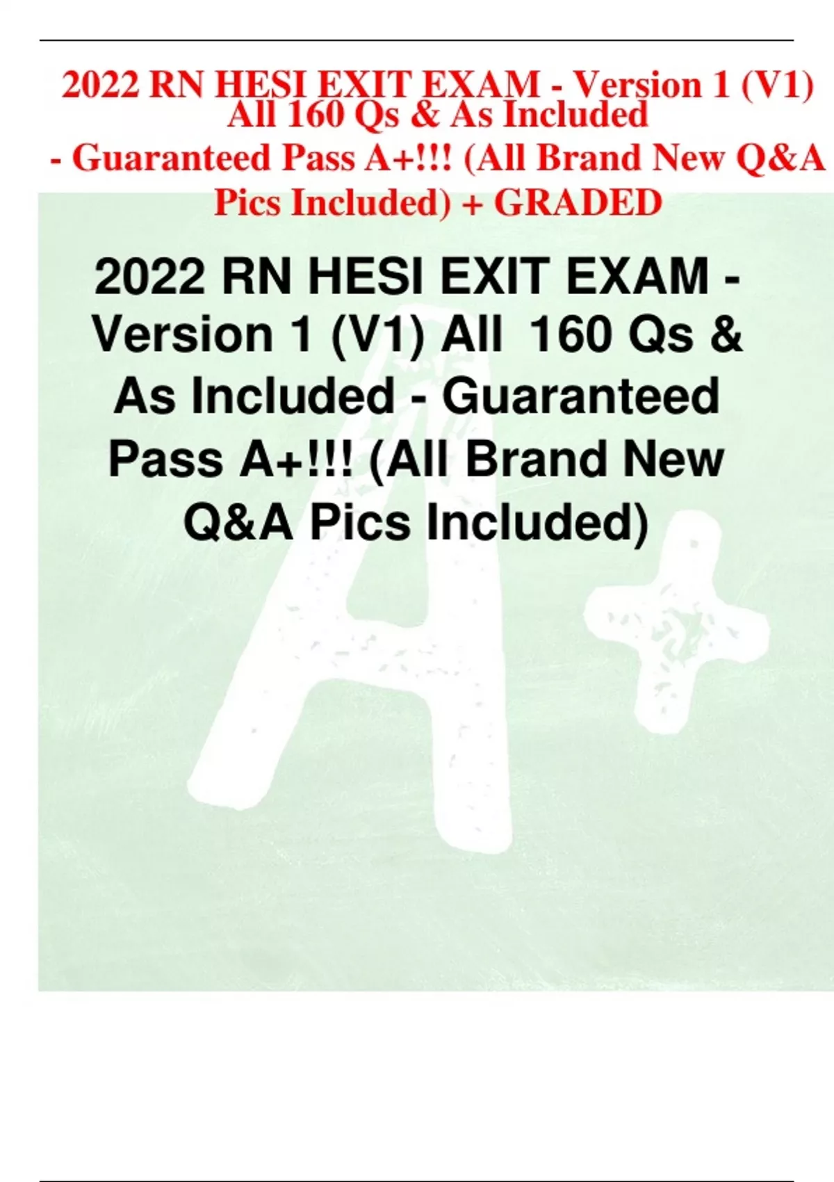 2022 RN HESI EXIT EXAM - Version 1 (V1) All 160 Qs & As Included - Guaranteed Pass A+!!! (All Brand New Q&A Pics Included)