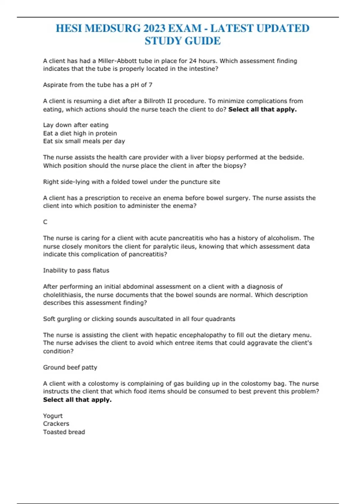 HESI MED SURG 2023/2024 EXAM LATEST UPDATED STUDY GUIDE HESI MED SURG 2023/2024 EXAM LATEST UPDATED STUDY GUIDE HESI MED SURG 2023/2024 EXAM LATEST UPDATED STUDY GUIDE